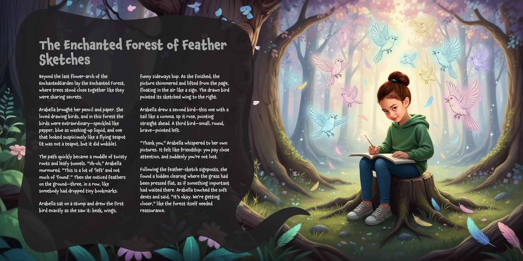 Explore the preview pages below to see how Arabella's adventures come to life—crafted with love and personalized just for her. We hope this preview brings a smile to your face and joy to Arabella's heart.
