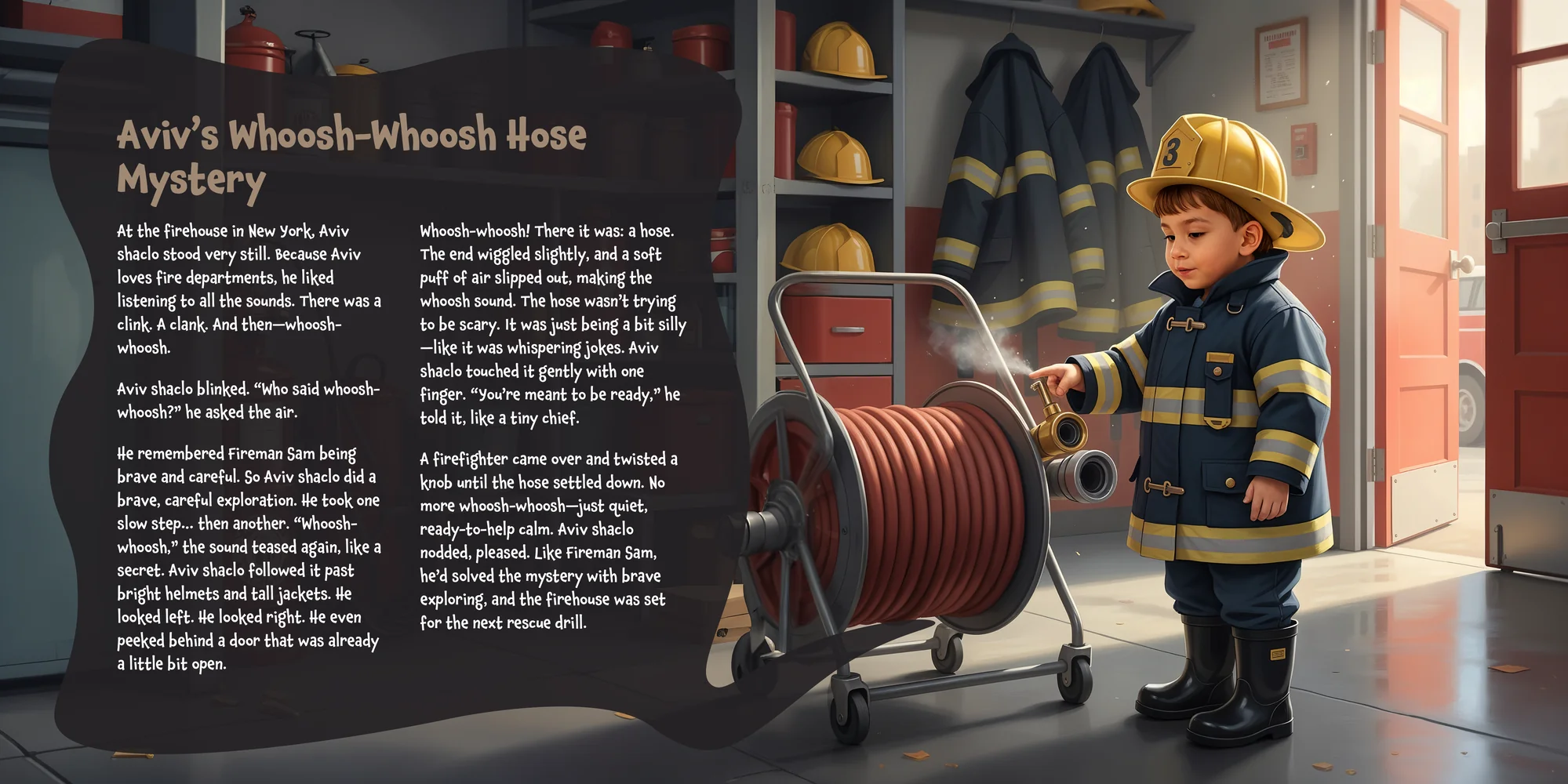 Welcome, Yuval! Here's a special preview of the story where Aviv shaclo is the star. This unique book captures the magic of Aviv shaclo's favorite things, and the little details you've shared.
