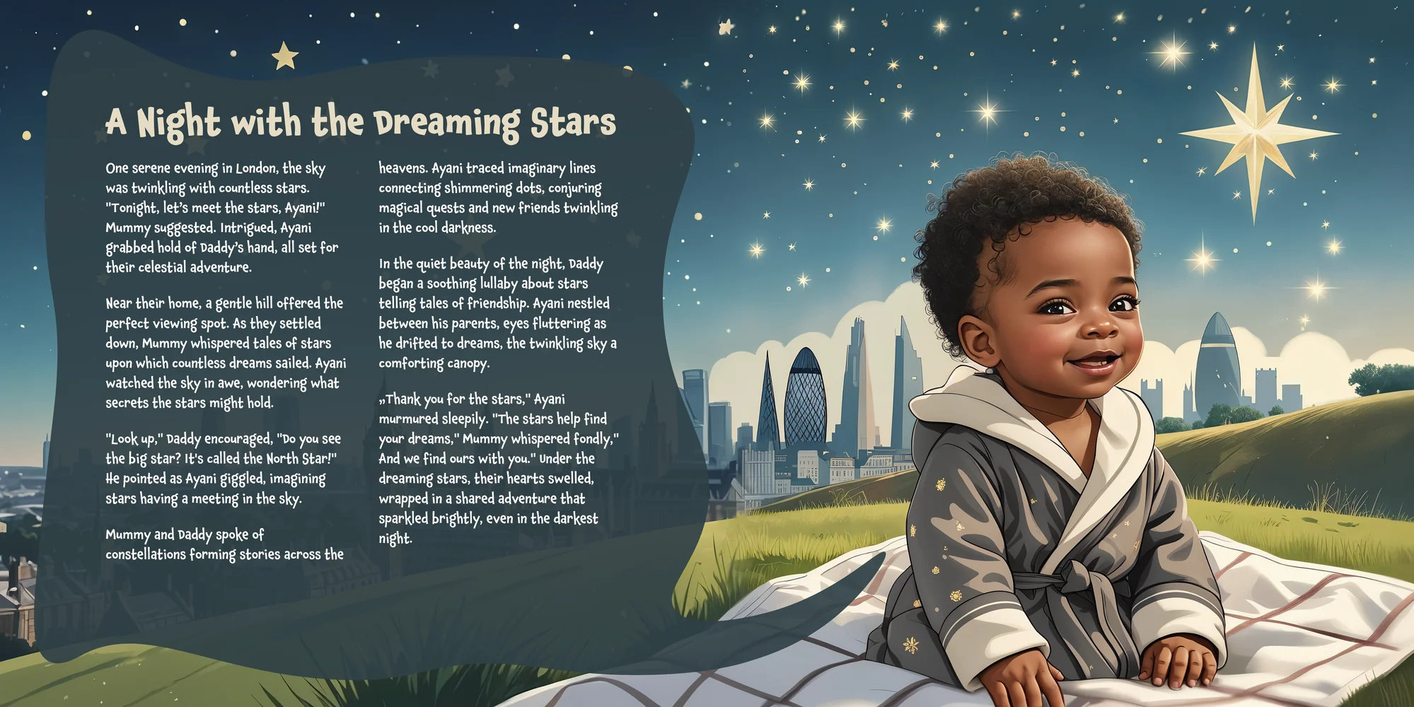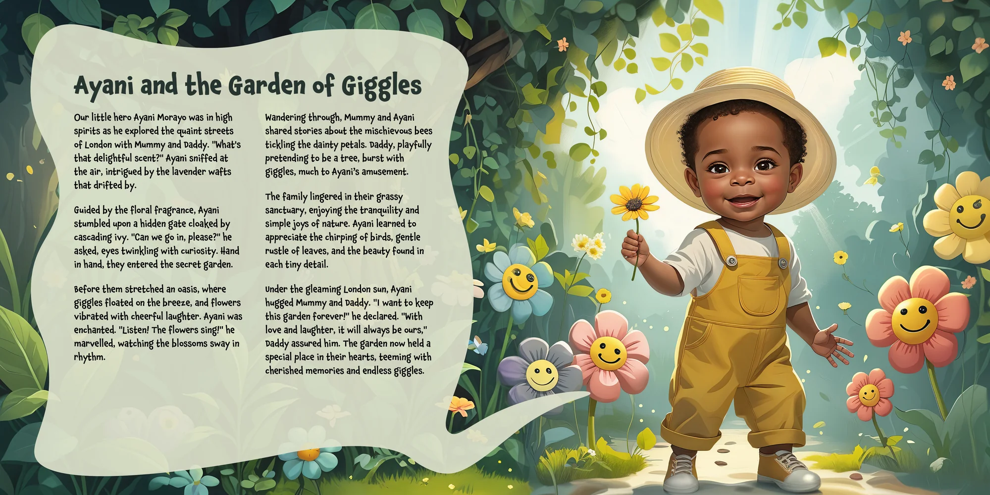 Explore the preview pages below to see how Ayani Morayo's adventures come to life—crafted with love and personalized just for him. We hope this preview brings a smile to your face and joy to Ayani Morayo's heart.