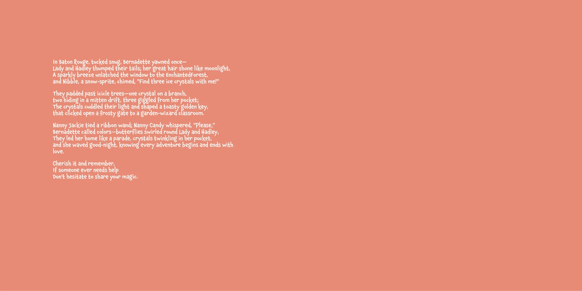 Welcome, Candace! Here's a special preview of the story where Bernadette is the star. This unique book captures the magic of Bernadette 's favorite things, and the little details you've shared.