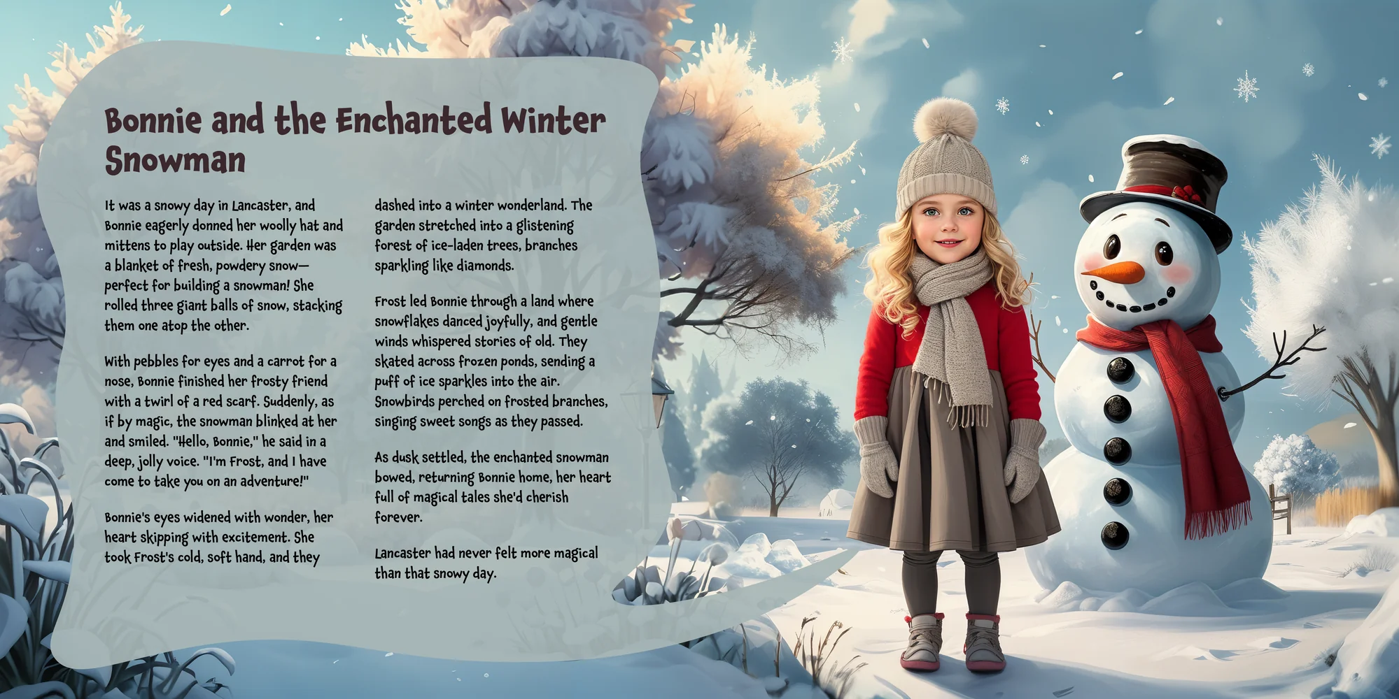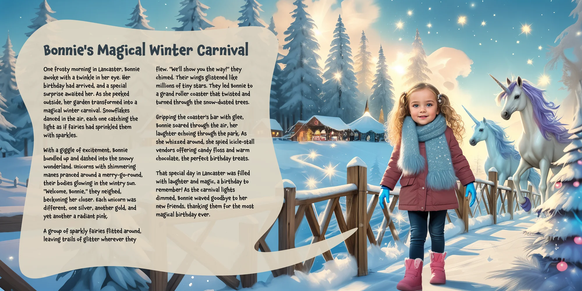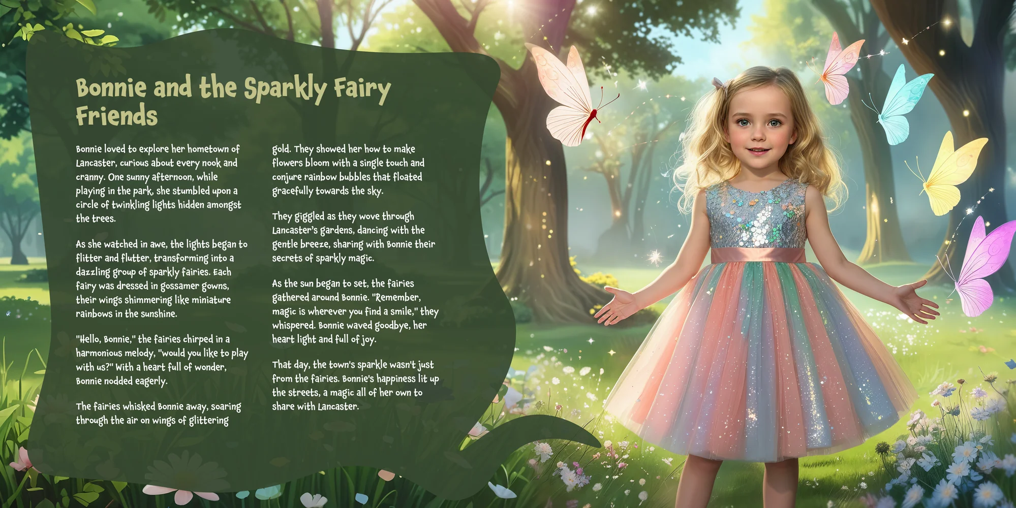 Explore the preview pages below to see how Bonnie's adventures come to life—crafted with love and personalized just for her. We hope this preview brings a smile to your face and joy to Bonnie's heart.