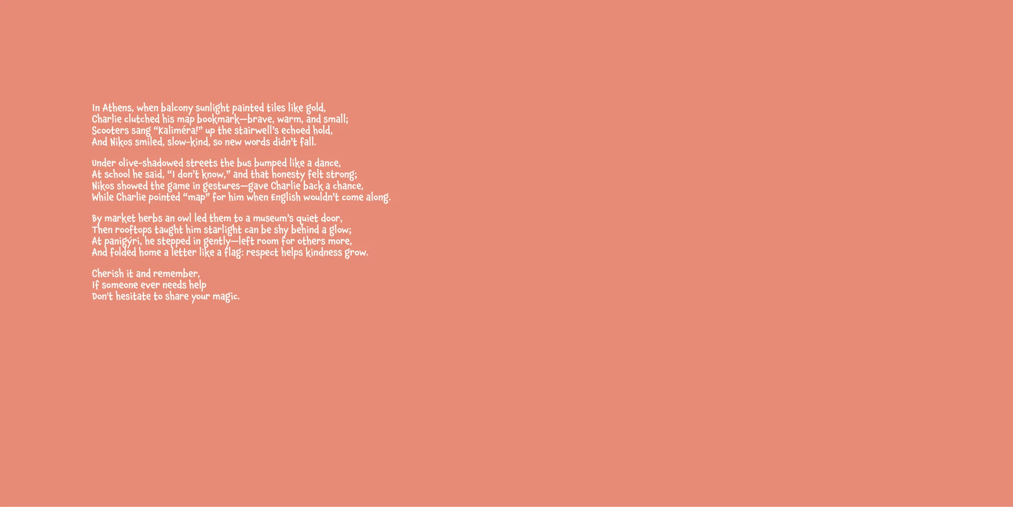 Welcome, Margaret! Here's a special preview of the story where Charlie is the star. This unique book captures the magic of Charlie 's favorite things, and the little details you've shared.