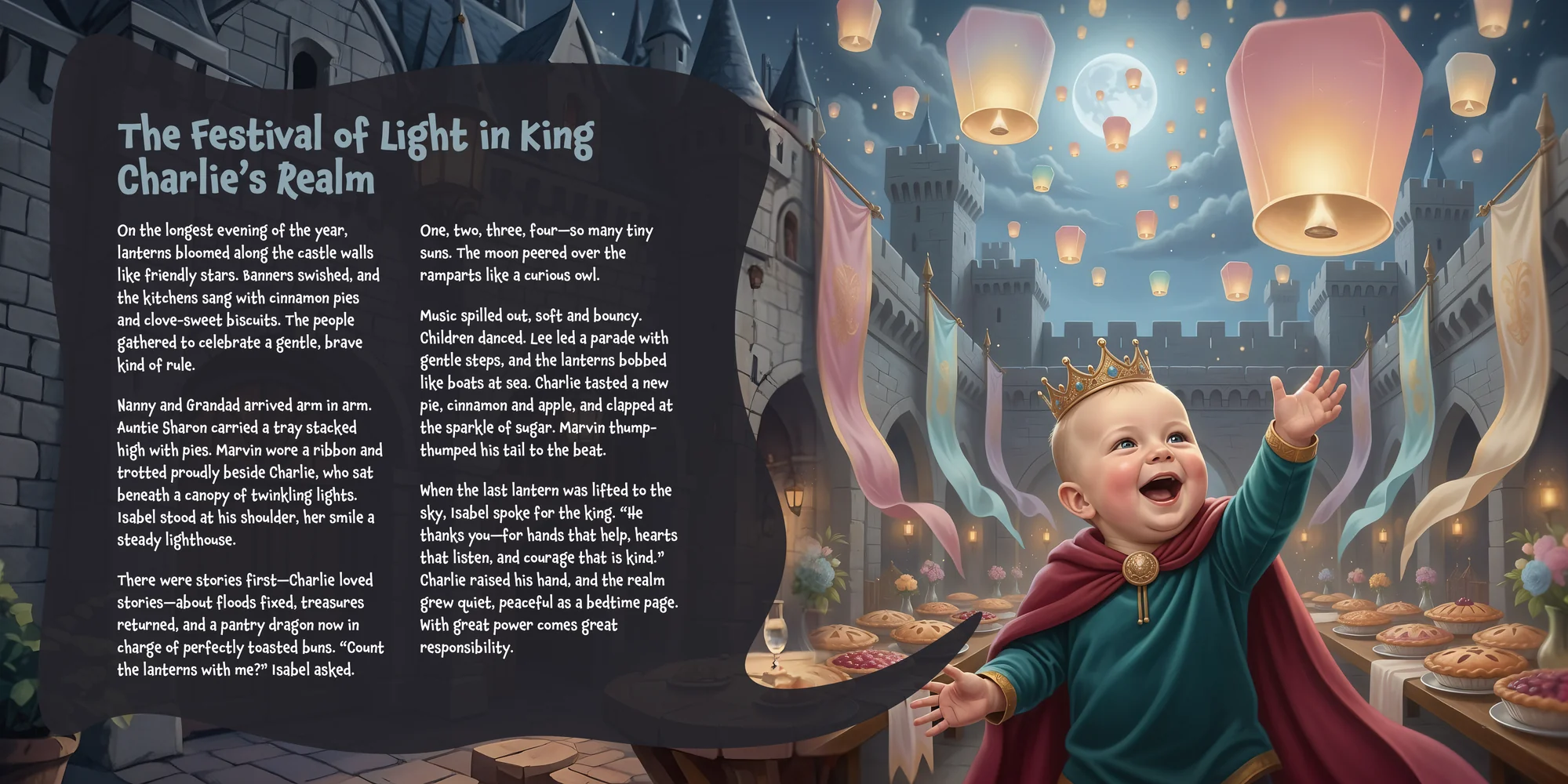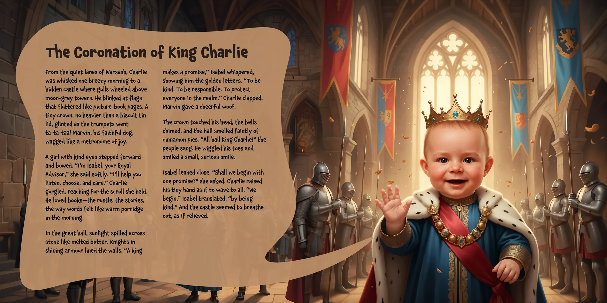 Explore the preview pages below to see how Charlie's adventures come to life—crafted with love and personalized just for him. We hope this preview brings a smile to your face and joy to Charlie's heart.