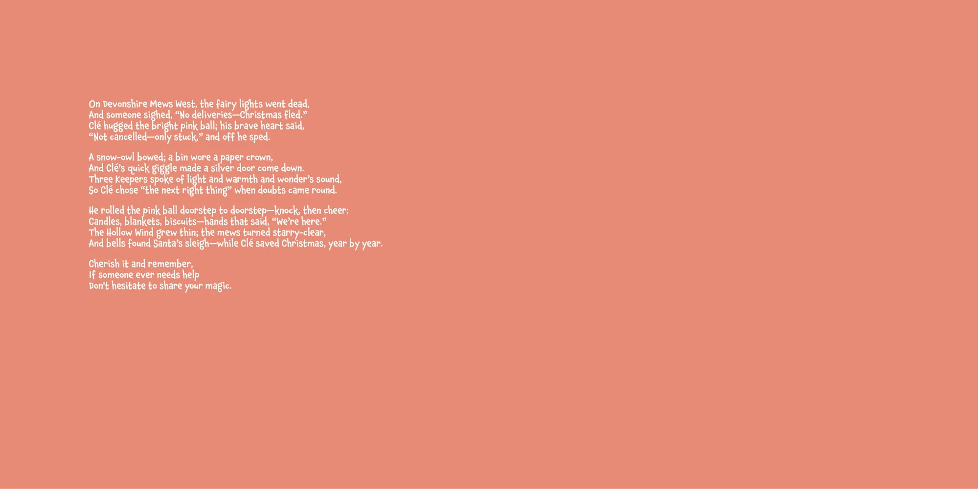 Welcome, Nick! Here's a special preview of the story where Clé is the star. This unique book captures the magic of Clé's favorite things, and the little details you've shared.