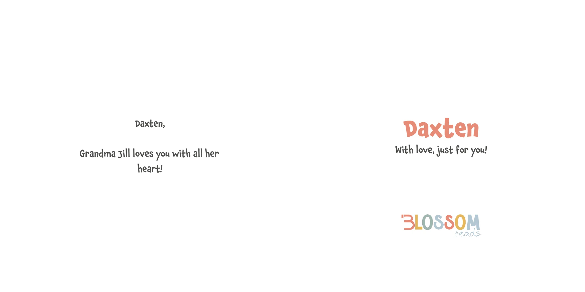 Welcome, Jill! Here's a special preview of the story where Daxten is the star. This unique book captures the magic of Daxten's favorite things, and the little details you've shared.