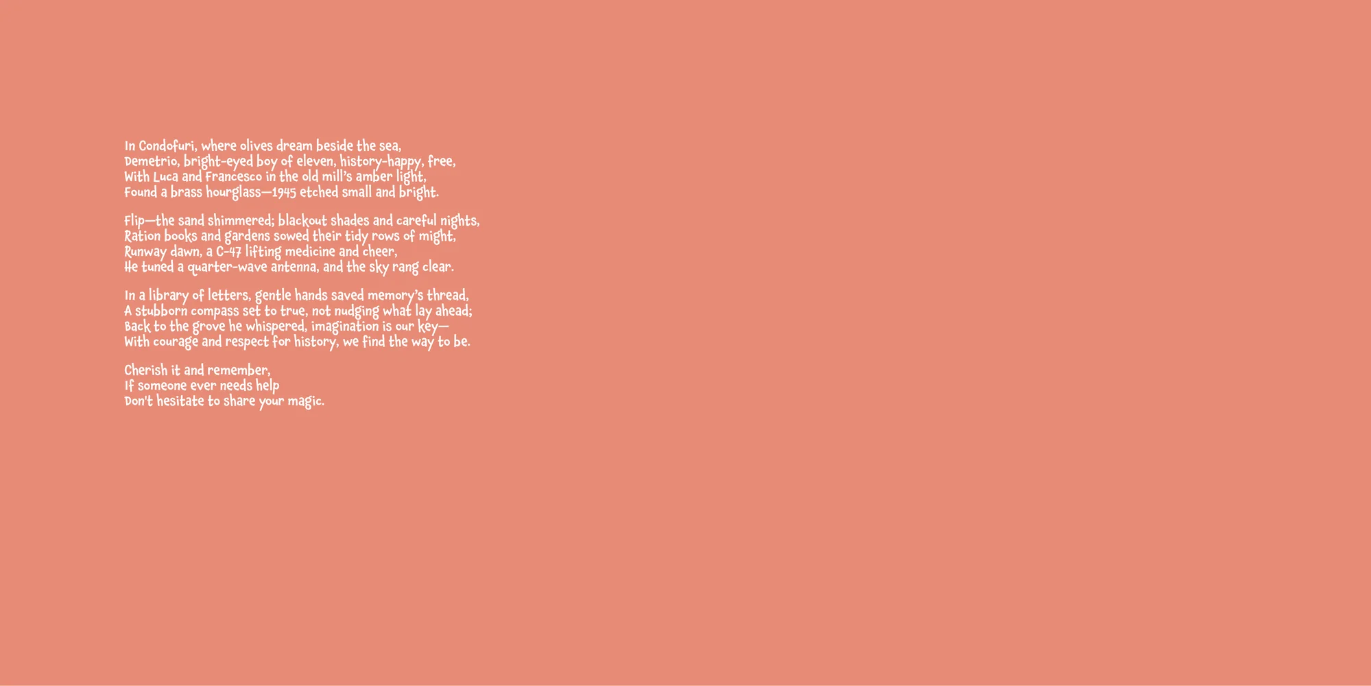 Explore the preview pages below to see how Demetrio 's adventures come to life—crafted with love and personalized just for him. We hope this preview brings a smile to your face and joy to Demetrio 's heart.