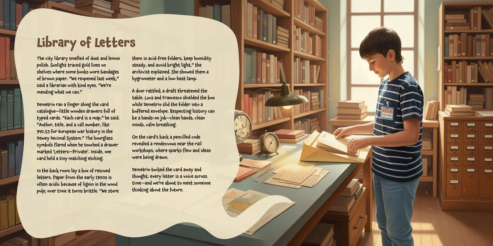 Welcome, Sara! Here's a special preview of the story where Demetrio is the star. This unique book captures the magic of Demetrio 's favorite things, and the little details you've shared.
