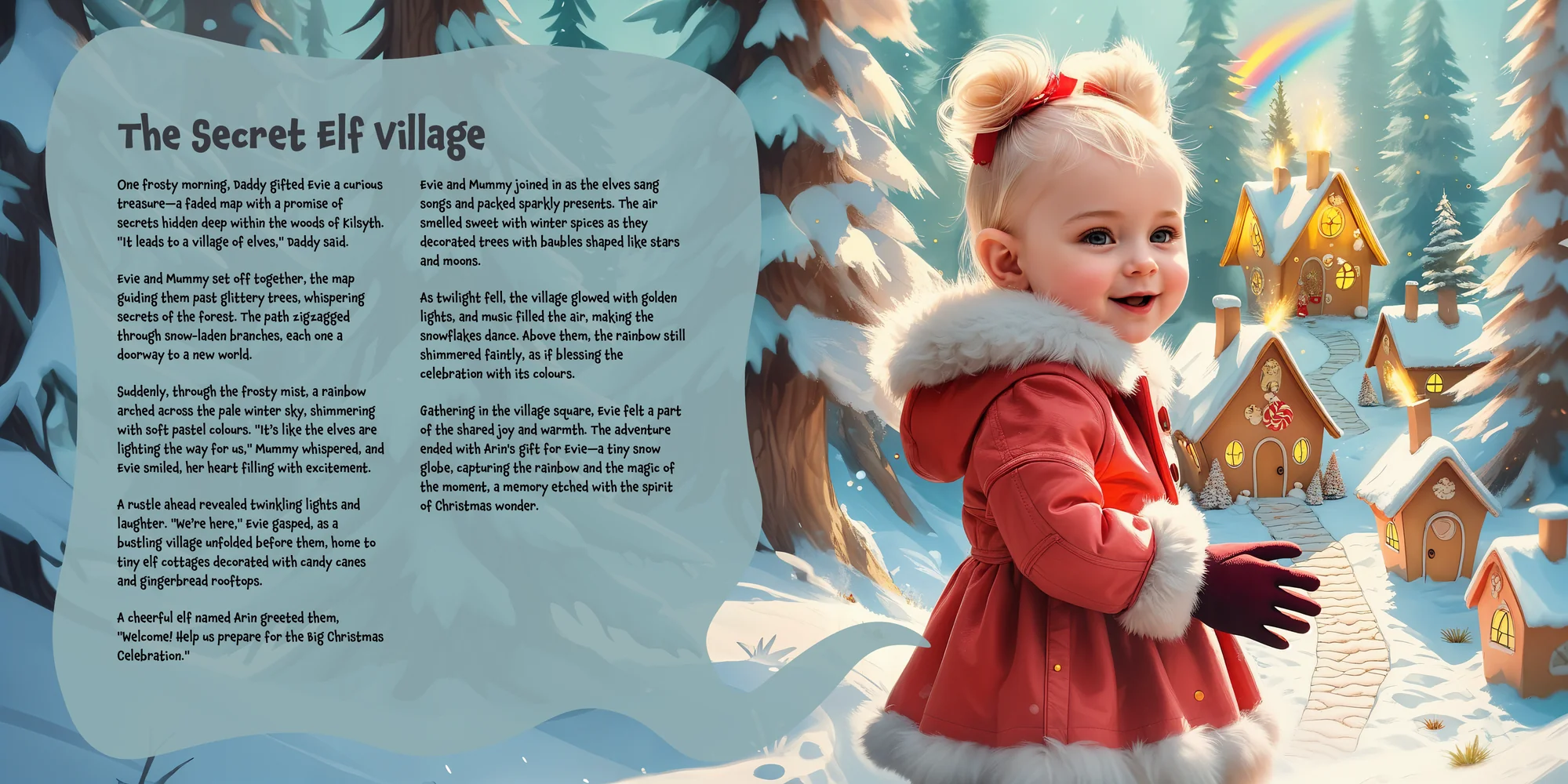 Explore the preview pages below to see how Evie's adventures come to life—crafted with love and personalized just for her. We hope this preview brings a smile to your face and joy to Evie's heart.