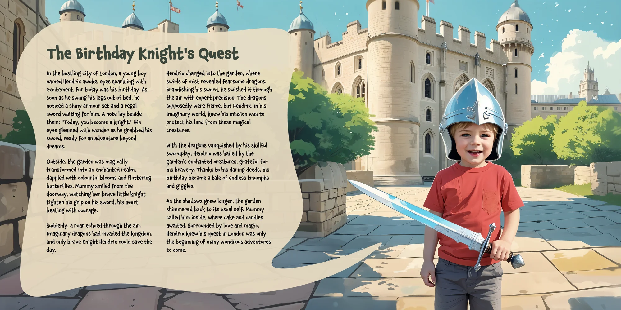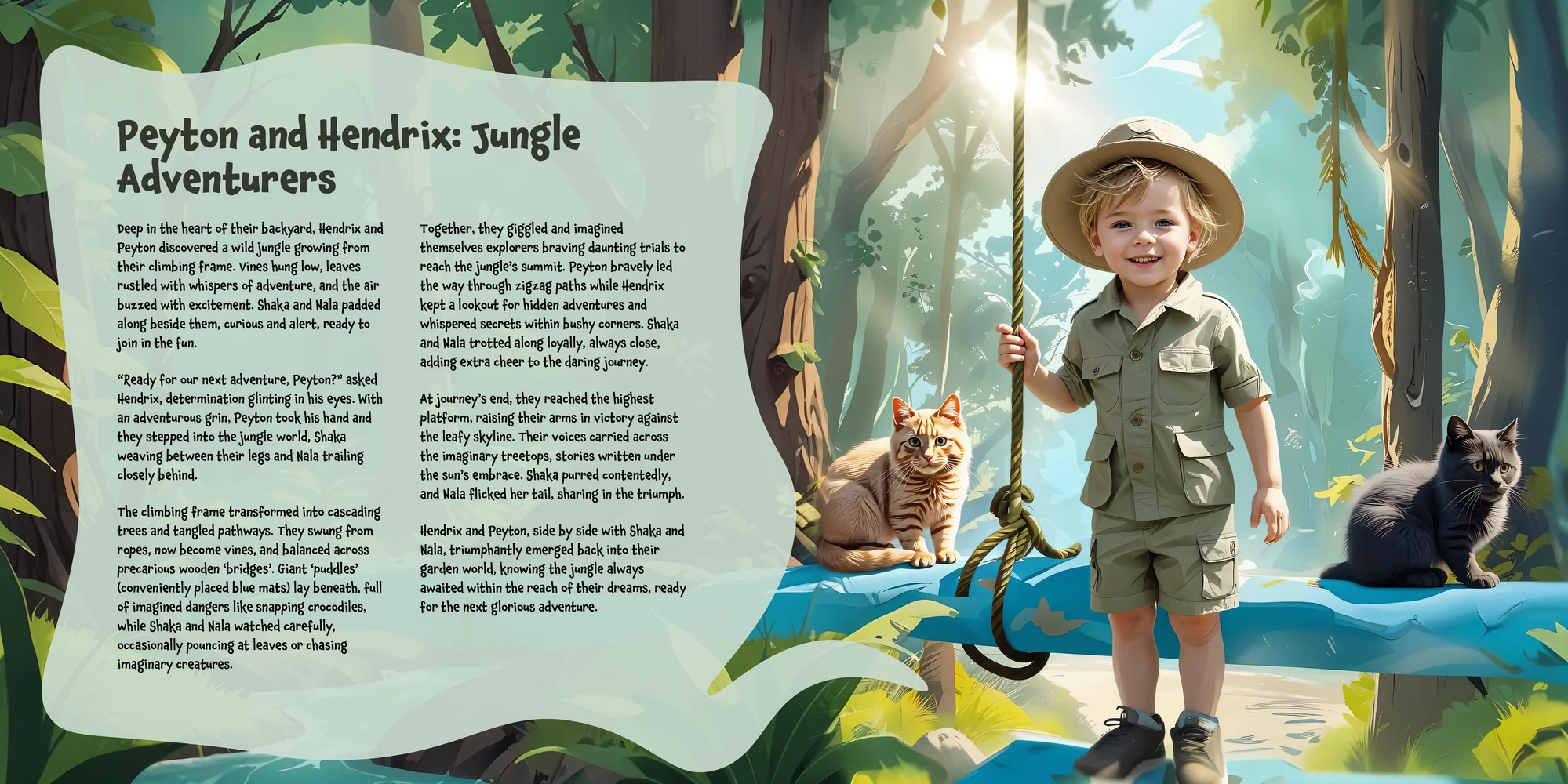 Explore the preview pages below to see how Hendrix's adventures come to life—crafted with love and personalized just for him. We hope this preview brings a smile to your face and joy to Hendrix's heart.
