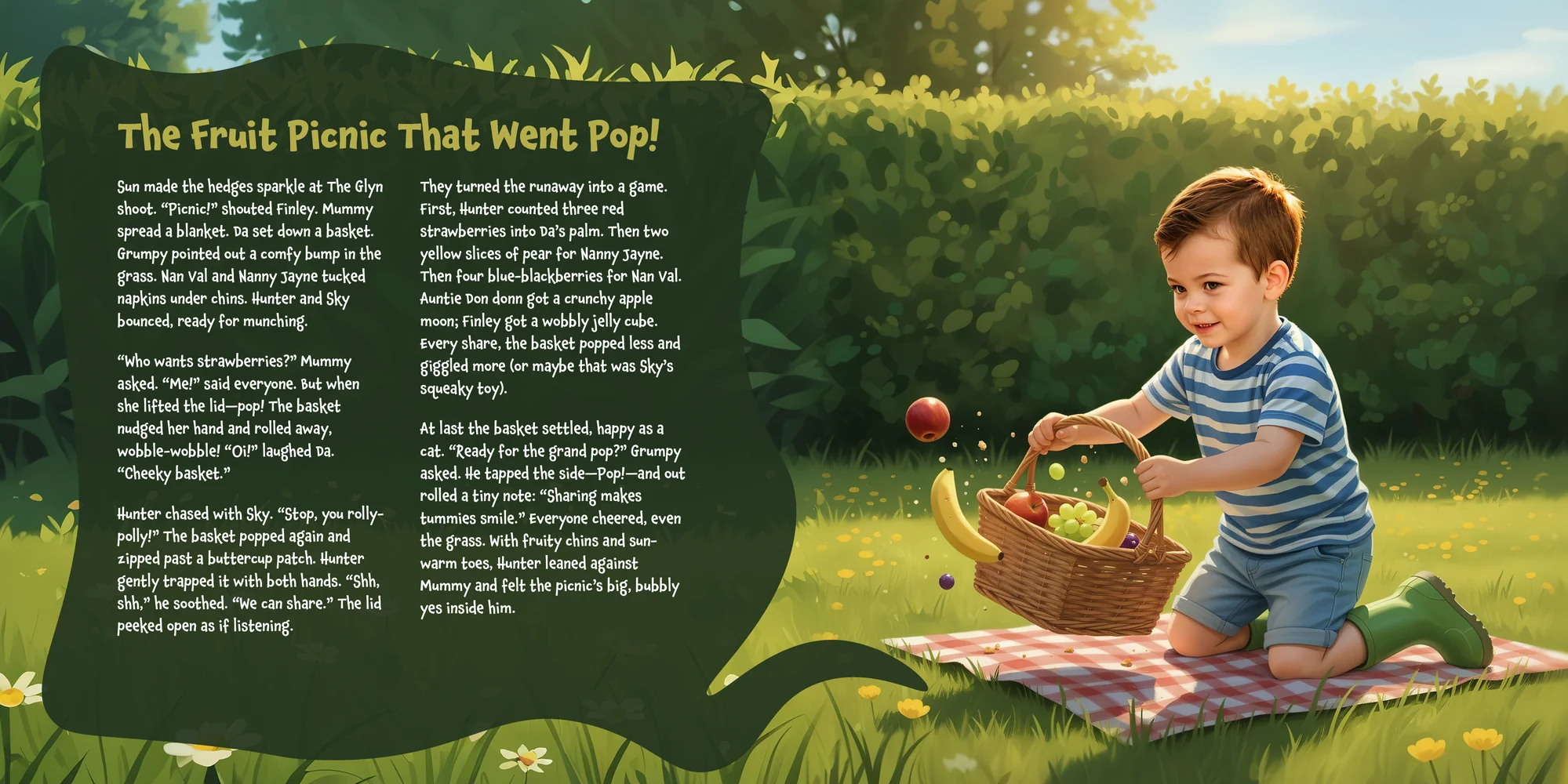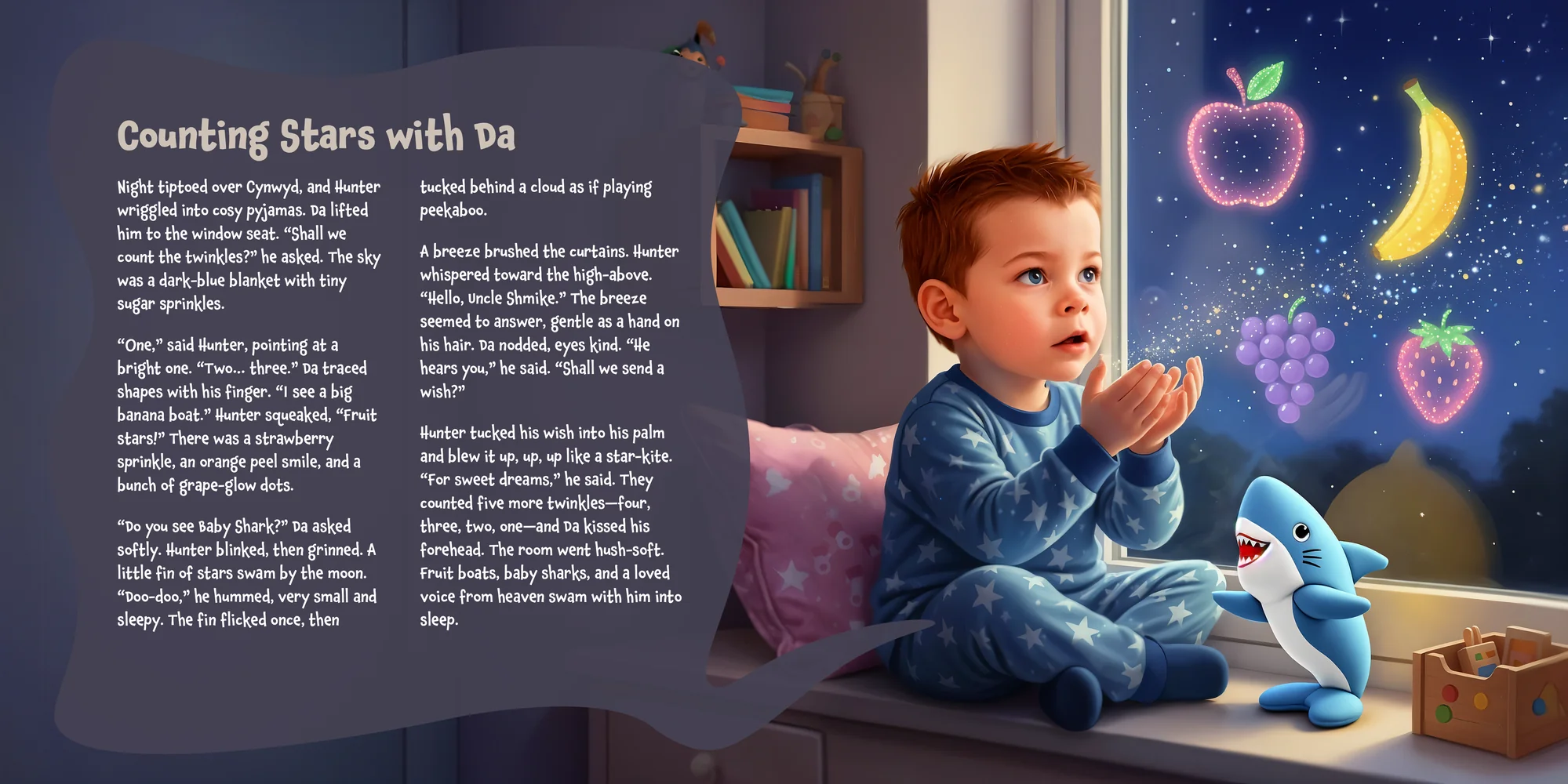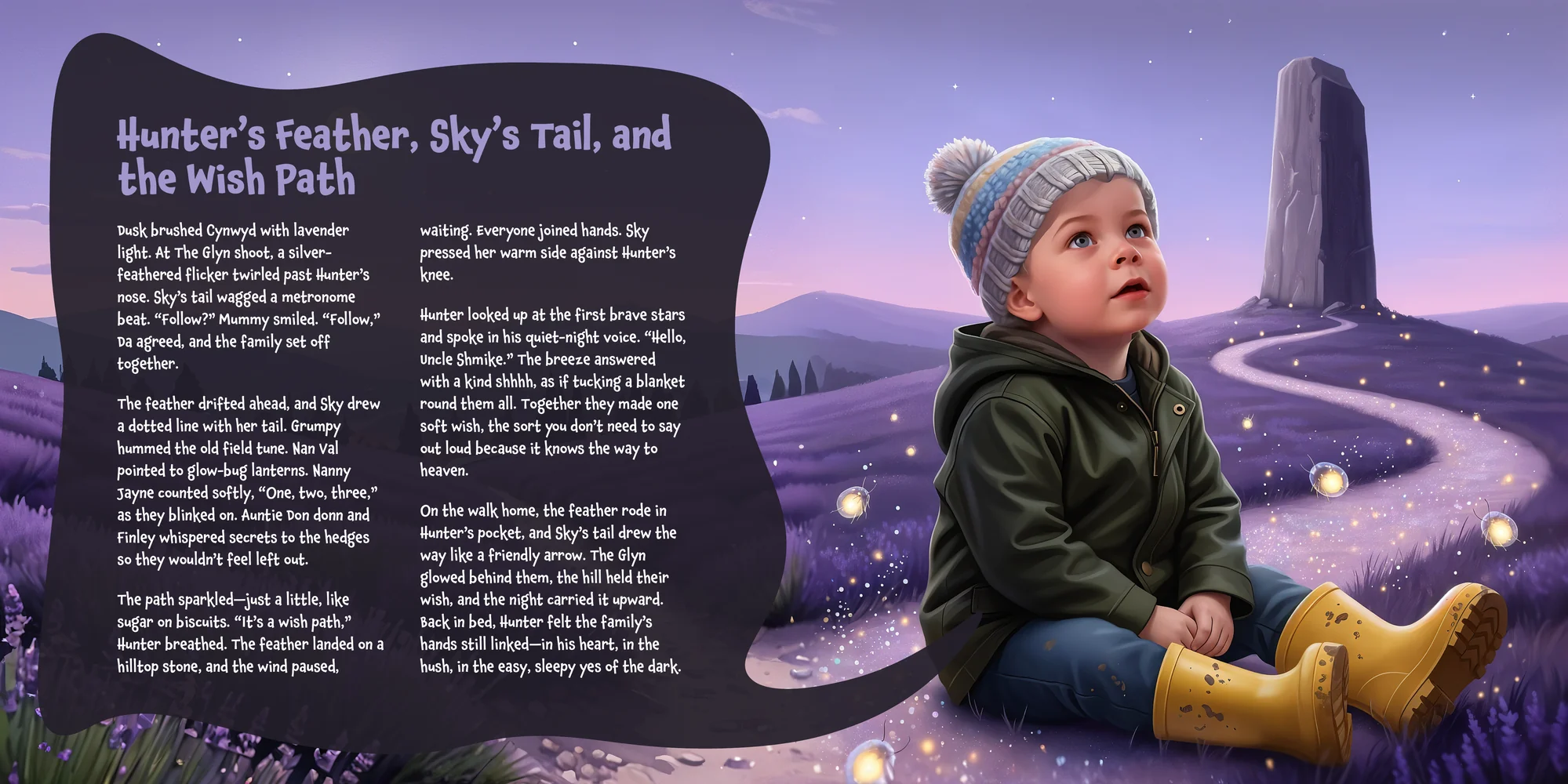 Welcome, Donna! Here's a special preview of the story where Hunter is the star. This unique book captures the magic of Hunter 's favorite things, and the little details you've shared.