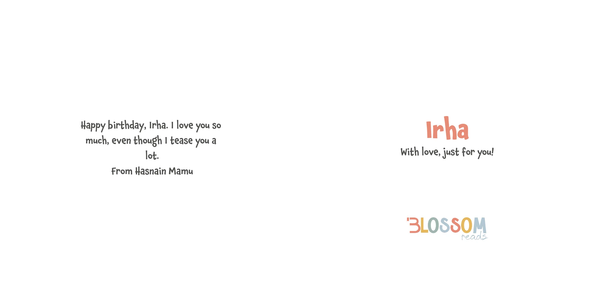 Welcome, Hasnain! Here's a special preview of the story where Irha is the star. This unique book captures the magic of Irha's favorite things, and the little details you've shared.