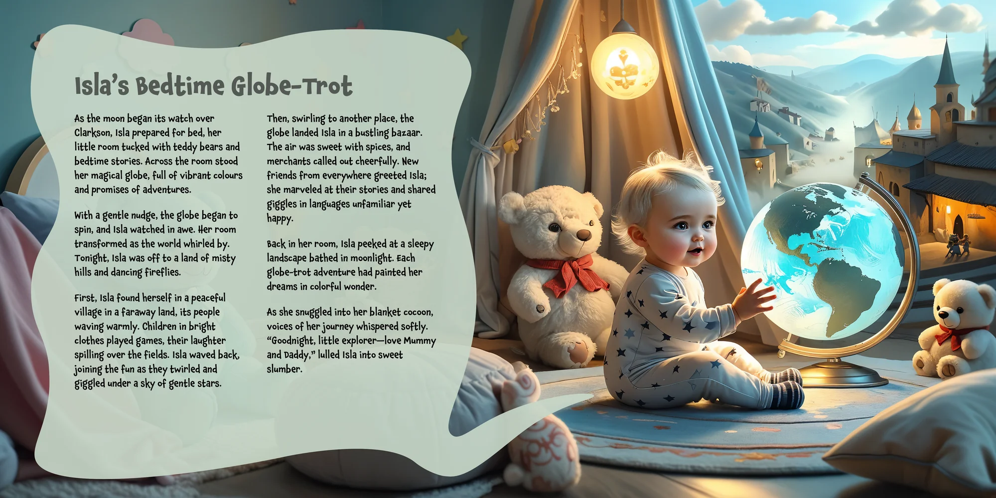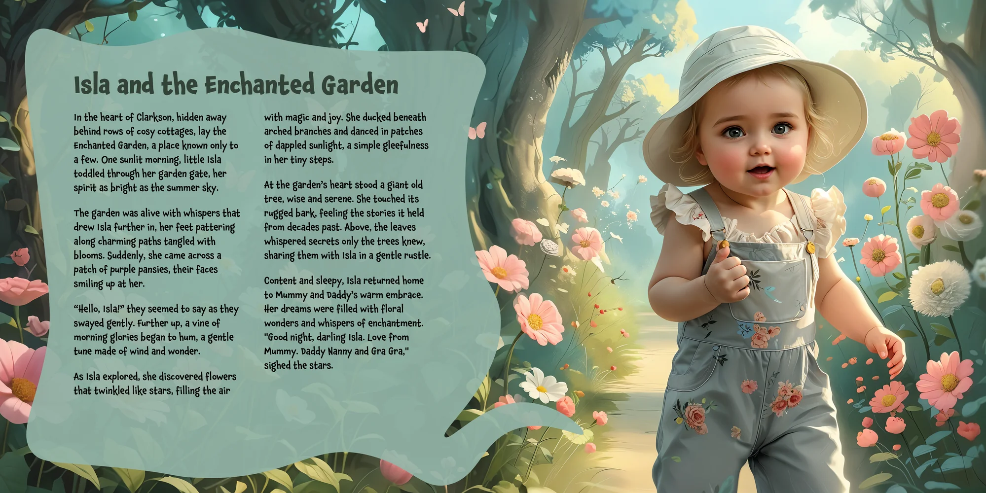 Explore the preview pages below to see how Isla's adventures come to life—crafted with love and personalized just for her. We hope this preview brings a smile to your face and joy to Isla's heart.