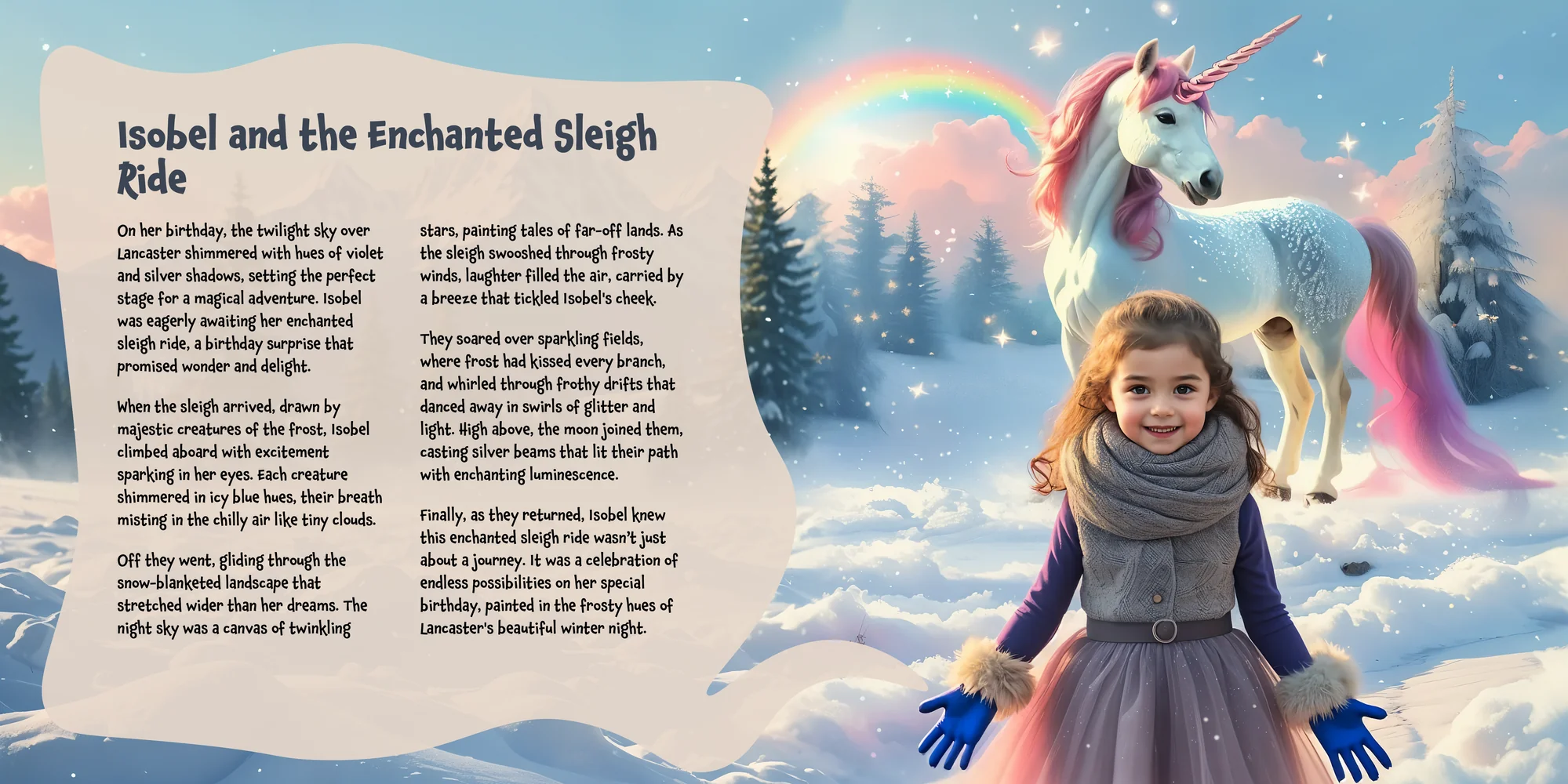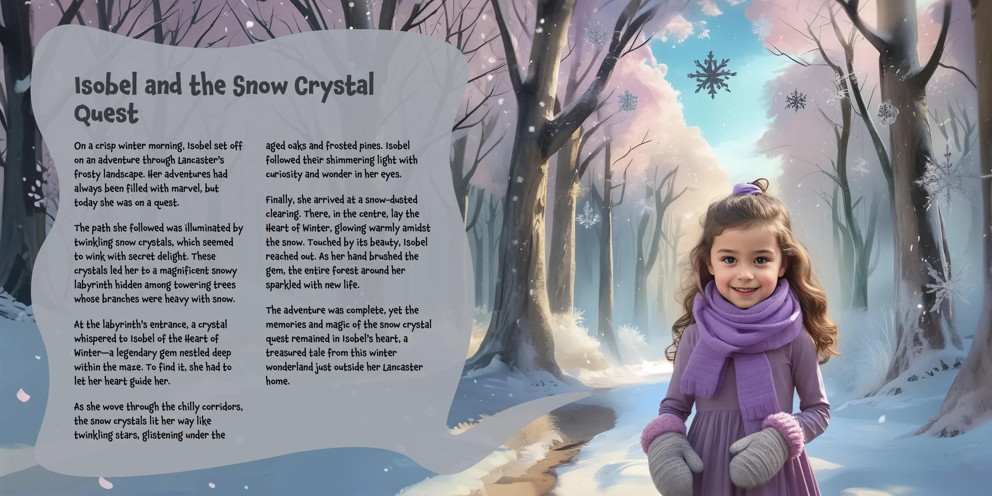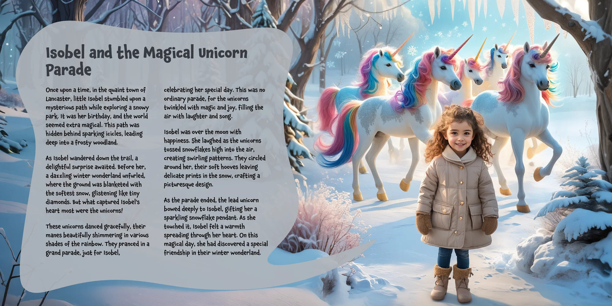 Explore the preview pages below to see how Isobel's adventures come to life—crafted with love and personalized just for her. We hope this preview brings a smile to your face and joy to Isobel's heart.