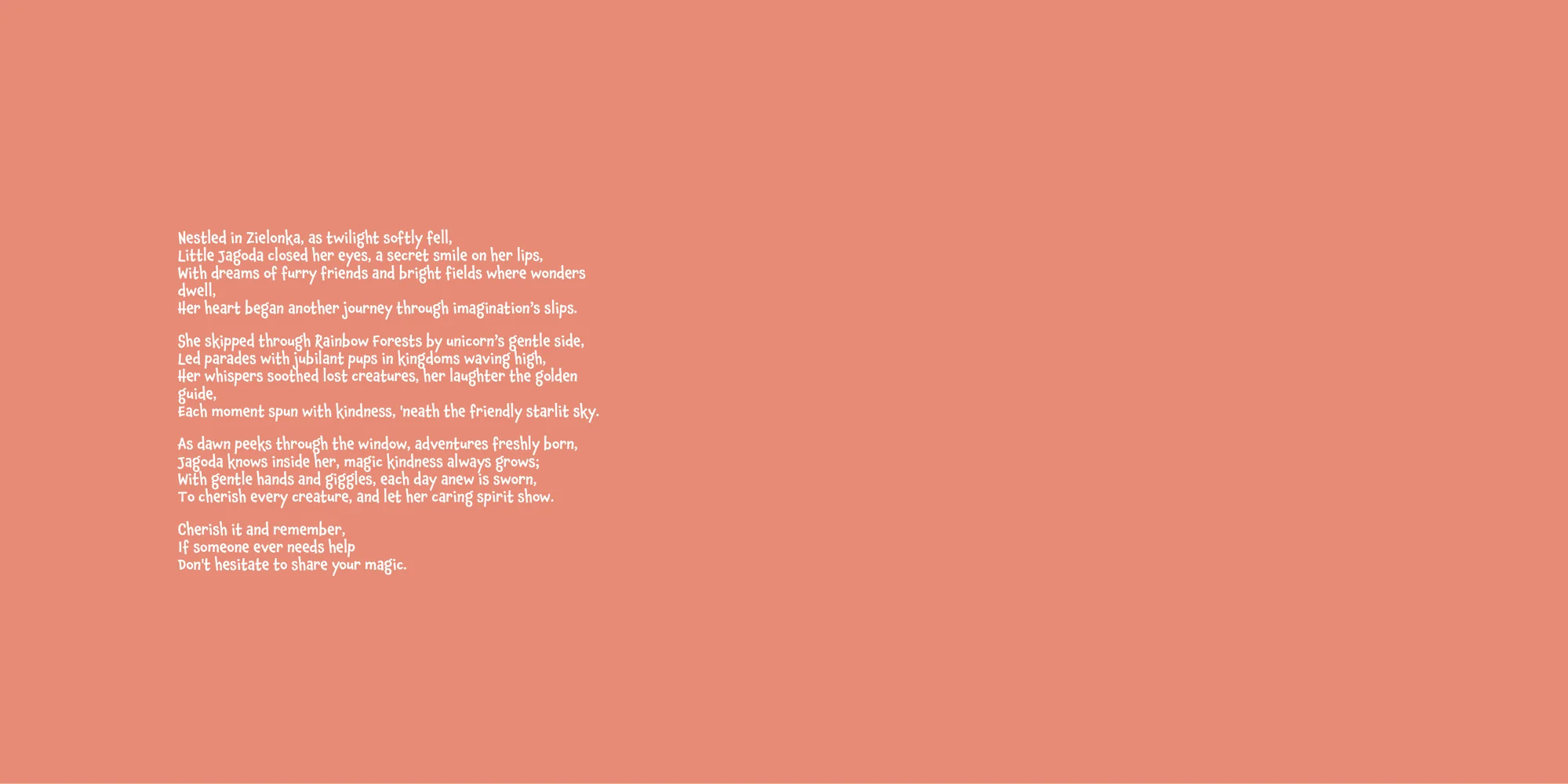 Welcome, Monika! Here's a special preview of the story where Jagoda is the star. This unique book captures the magic of Jagoda's favorite things, and the little details you've shared.