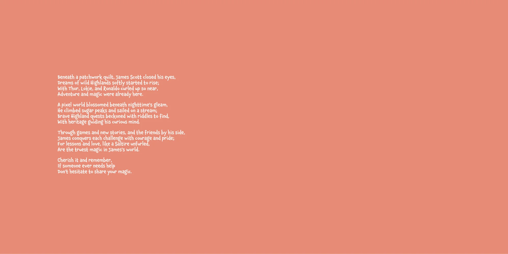 Welcome, Bella donna! Here's a special preview of the story where James Scott is the star. This unique book captures the magic of James Scott's favorite things, and the little details you've shared.