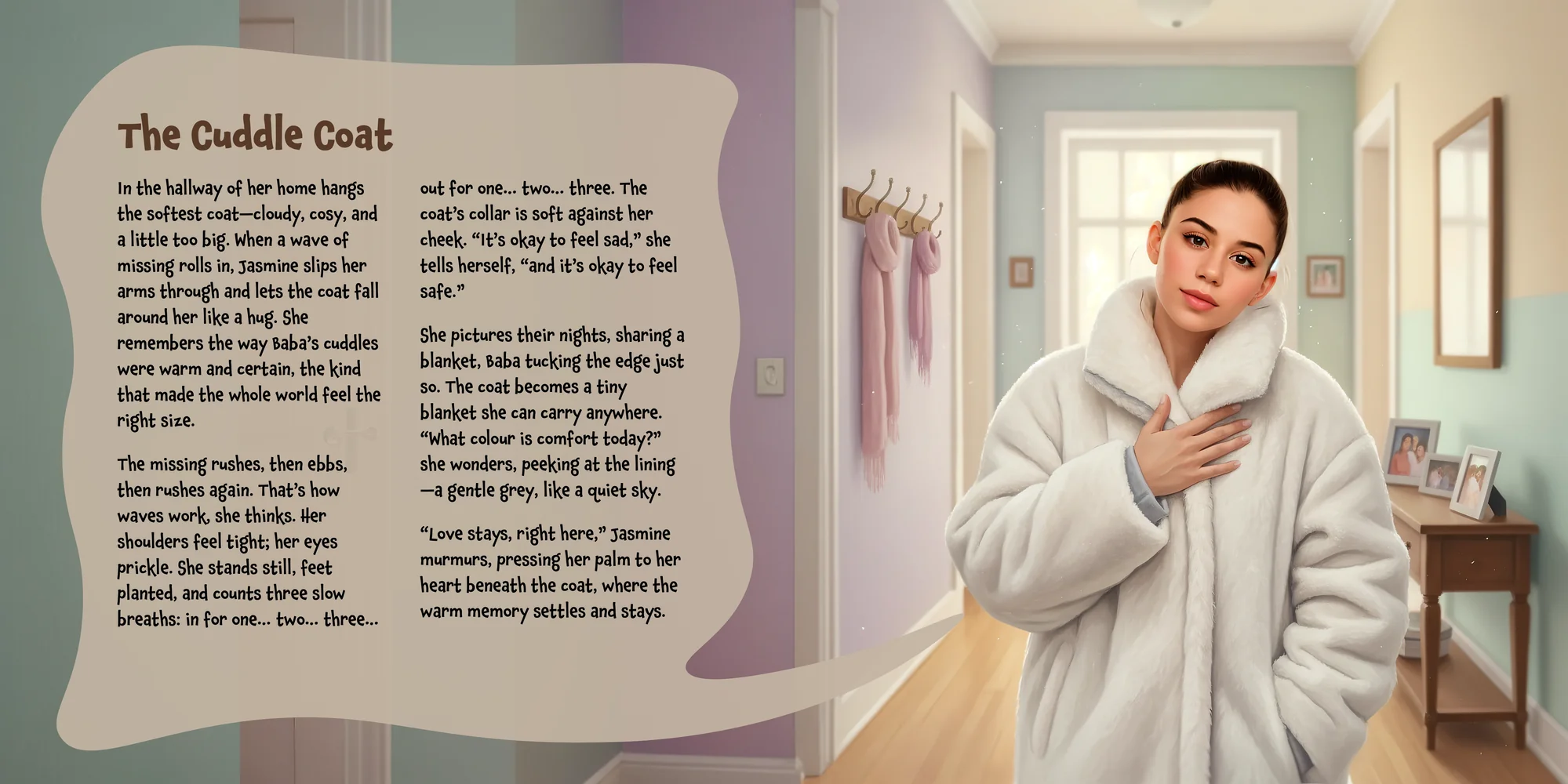 Explore the preview pages below to see how Jasmine's adventures come to life—crafted with love and personalized just for her. We hope this preview brings a smile to your face and joy to Jasmine's heart.