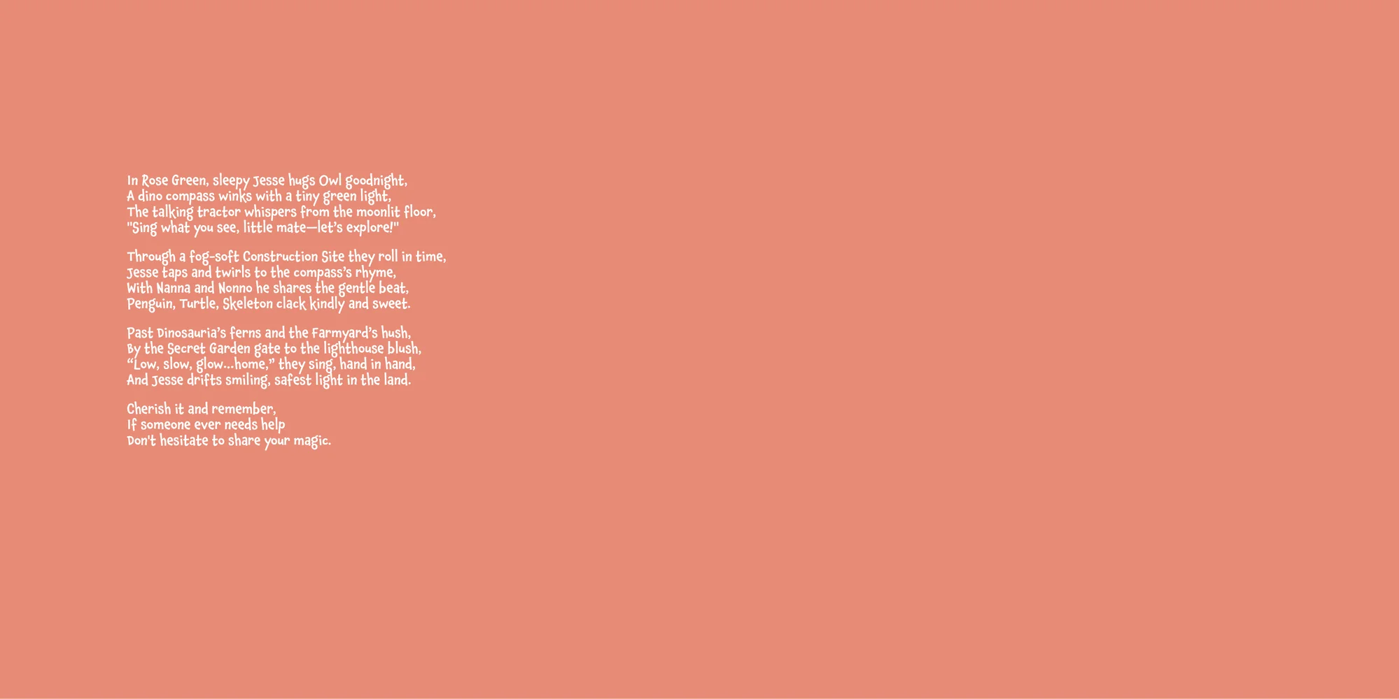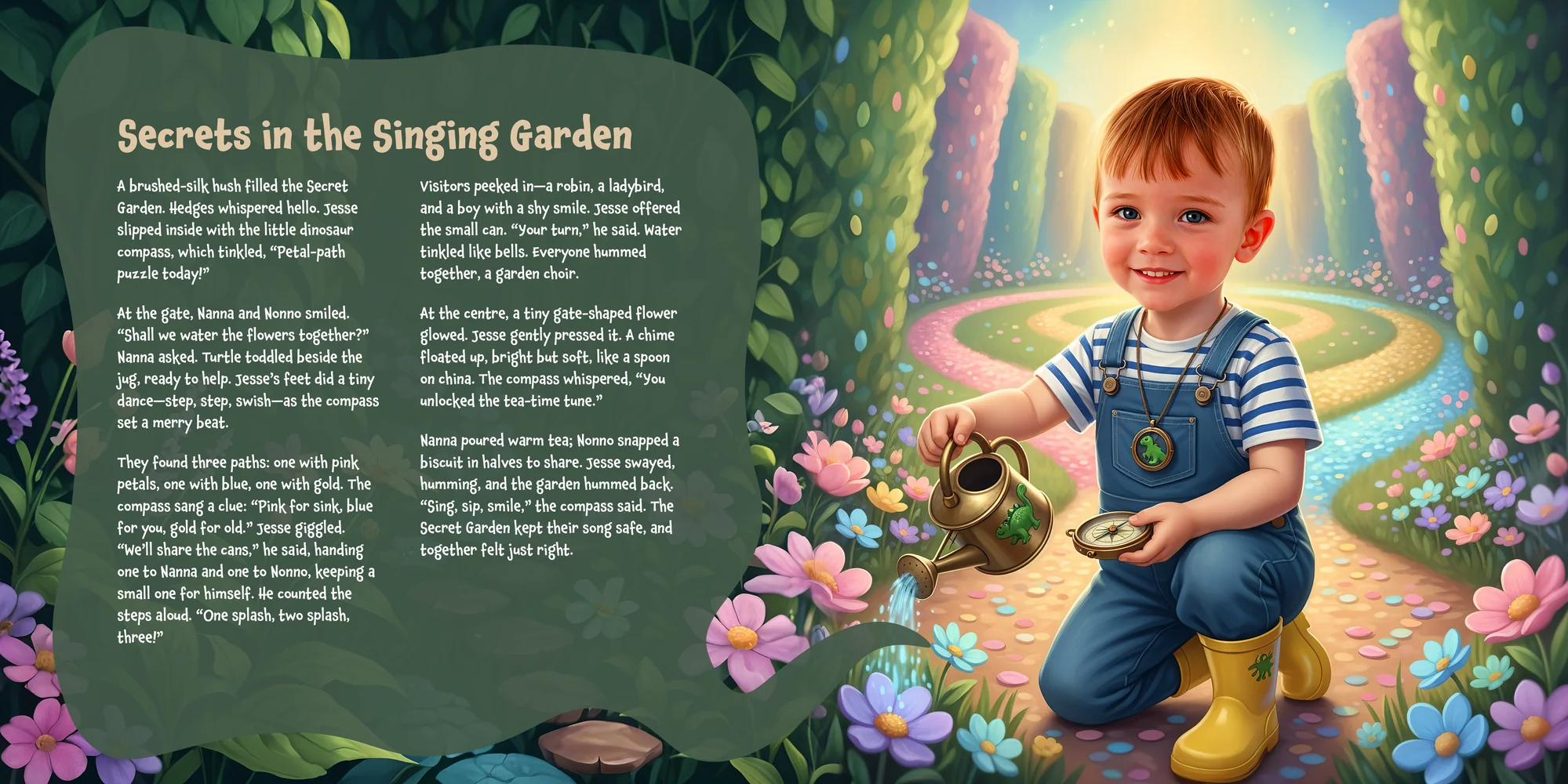 Welcome, Giuseppe! Here's a special preview of the story where Jesse is the star. This unique book captures the magic of Jesse's favorite things, and the little details you've shared.