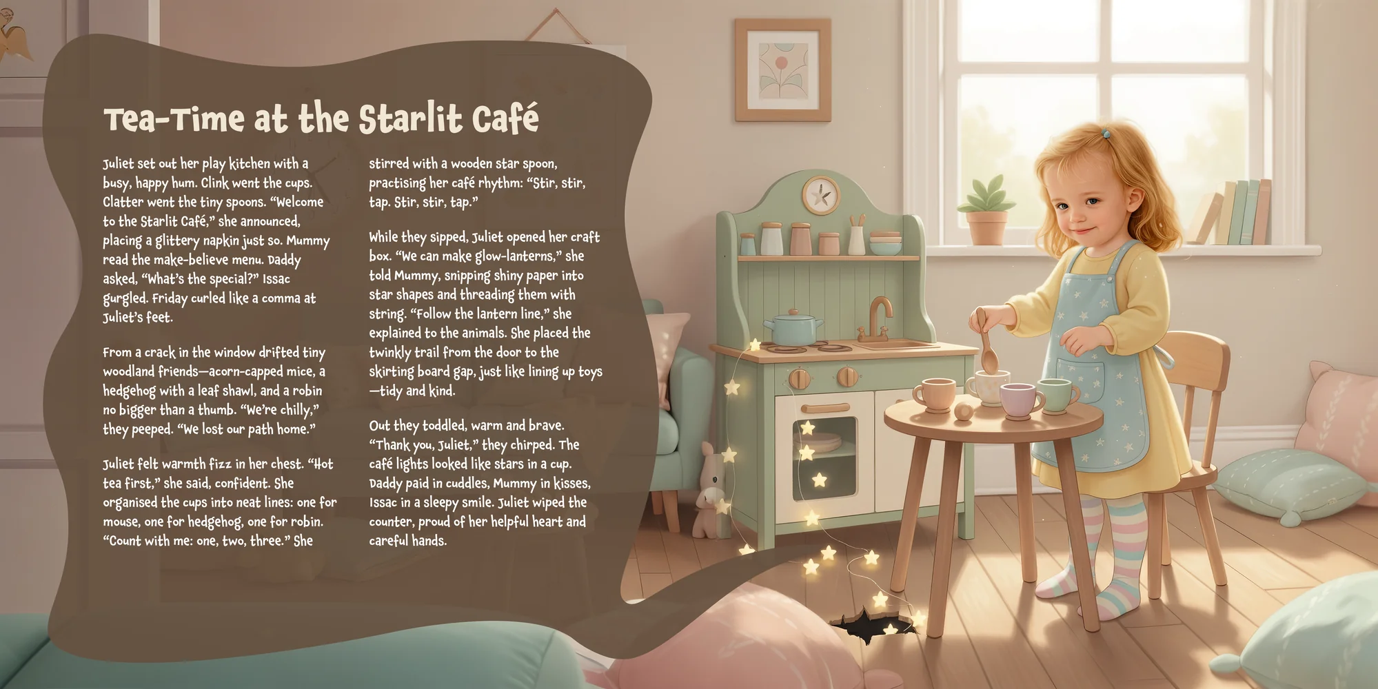 Explore the preview pages below to see how Juliet's adventures come to life—crafted with love and personalized just for her. We hope this preview brings a smile to your face and joy to Juliet's heart.