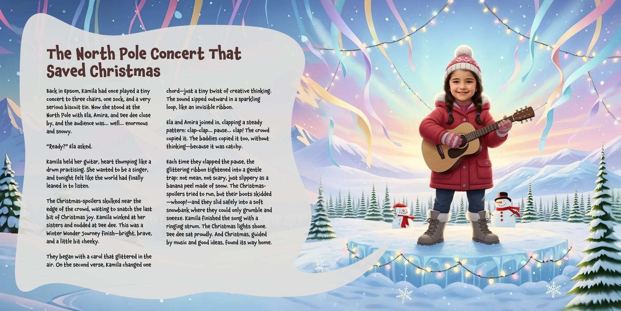 Explore the preview pages below to see how Kamila's adventures come to life—crafted with love and personalized just for her. We hope this preview brings a smile to your face and joy to Kamila's heart.