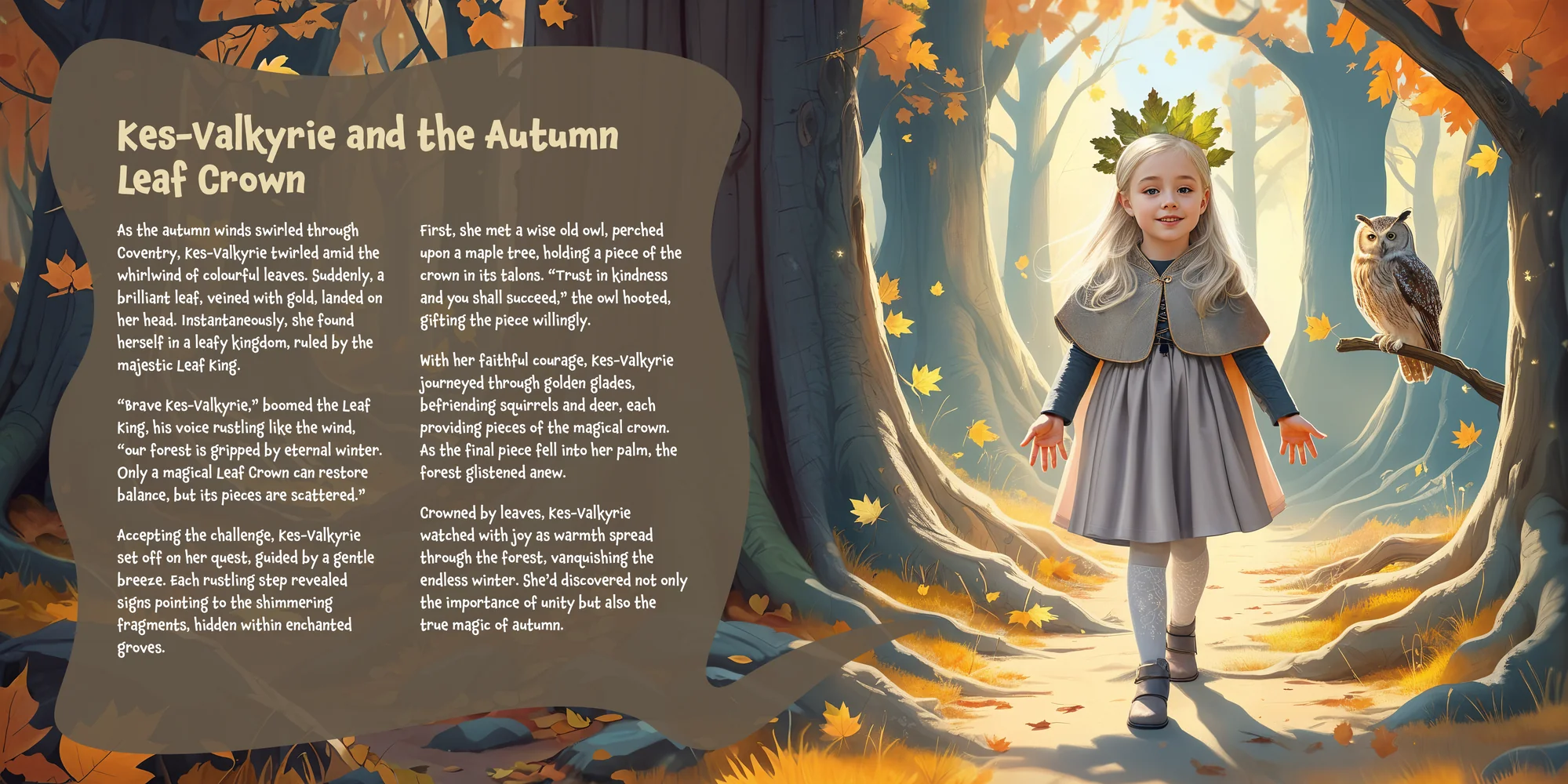 Welcome, Danielle! Here's a special preview of the story where Kes-Valkyrie is the star. This unique book captures the magic of Kes-Valkyrie's favorite things, and the little details you've shared.