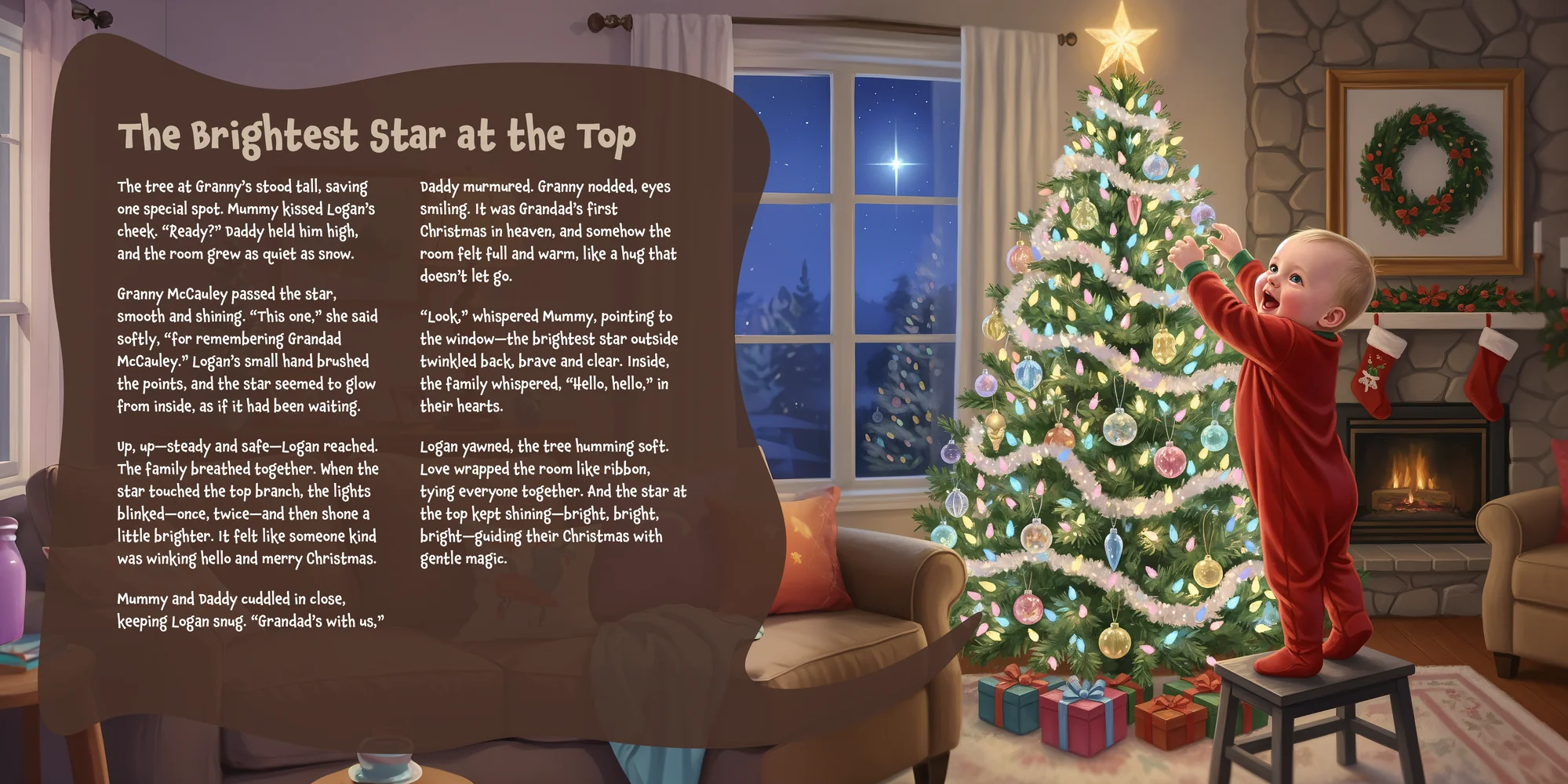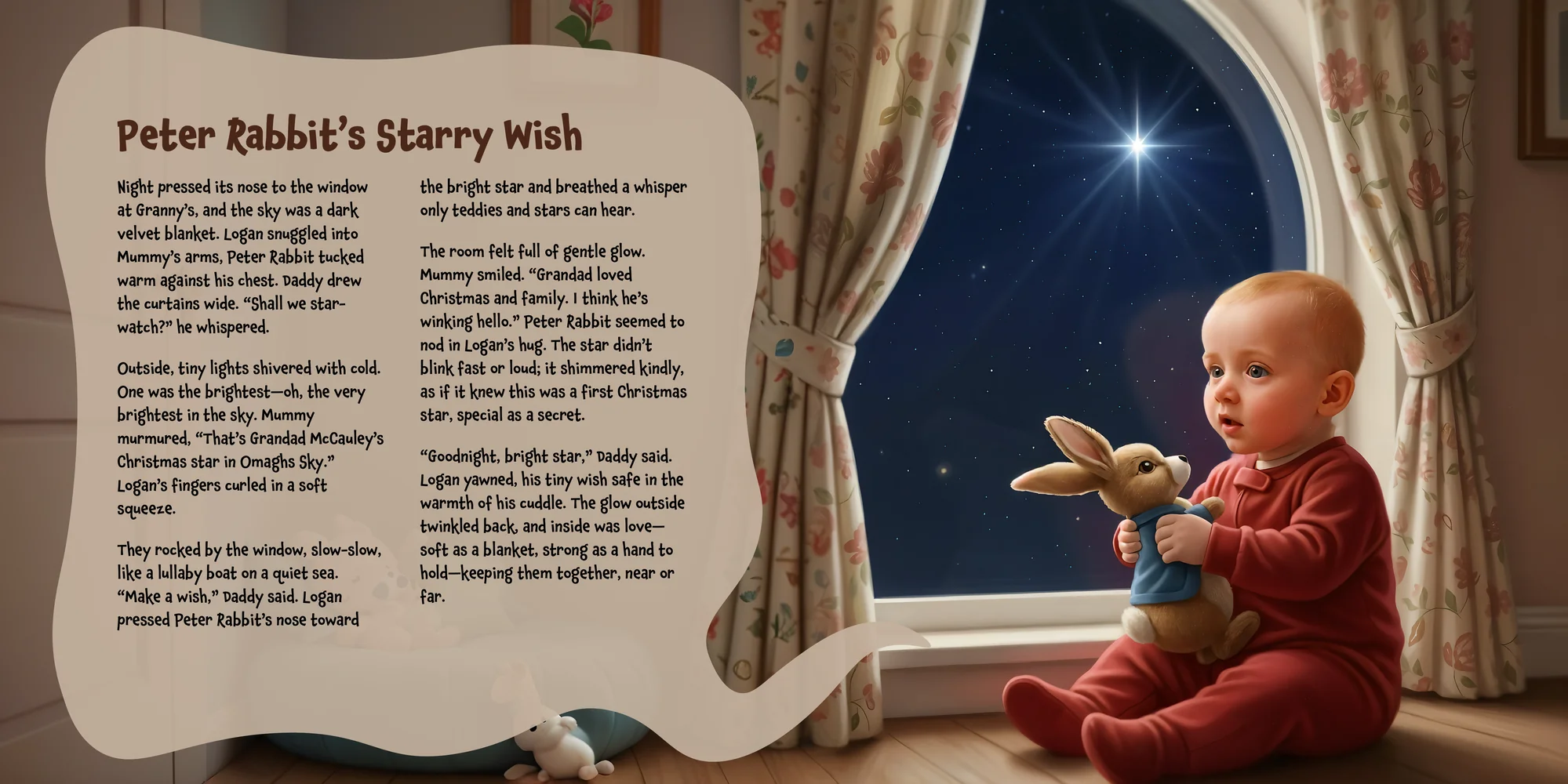 Welcome, Naoimh! Here's a special preview of the story where Logan is the star. This unique book captures the magic of Logan's favorite things, and the little details you've shared.