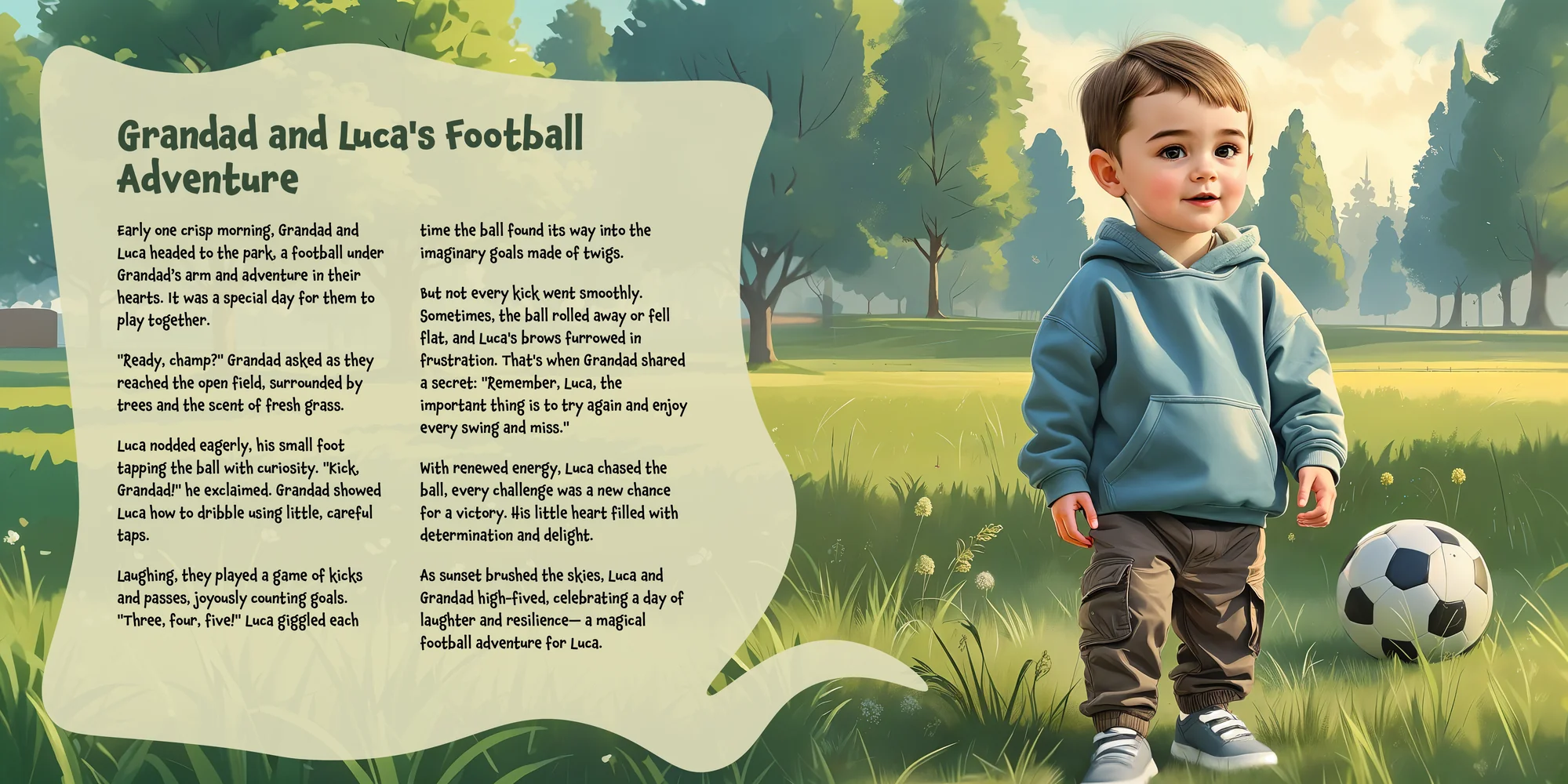 Explore the preview pages below to see how Luca's adventures come to life—crafted with love and personalized just for him. We hope this preview brings a smile to your face and joy to Luca's heart.