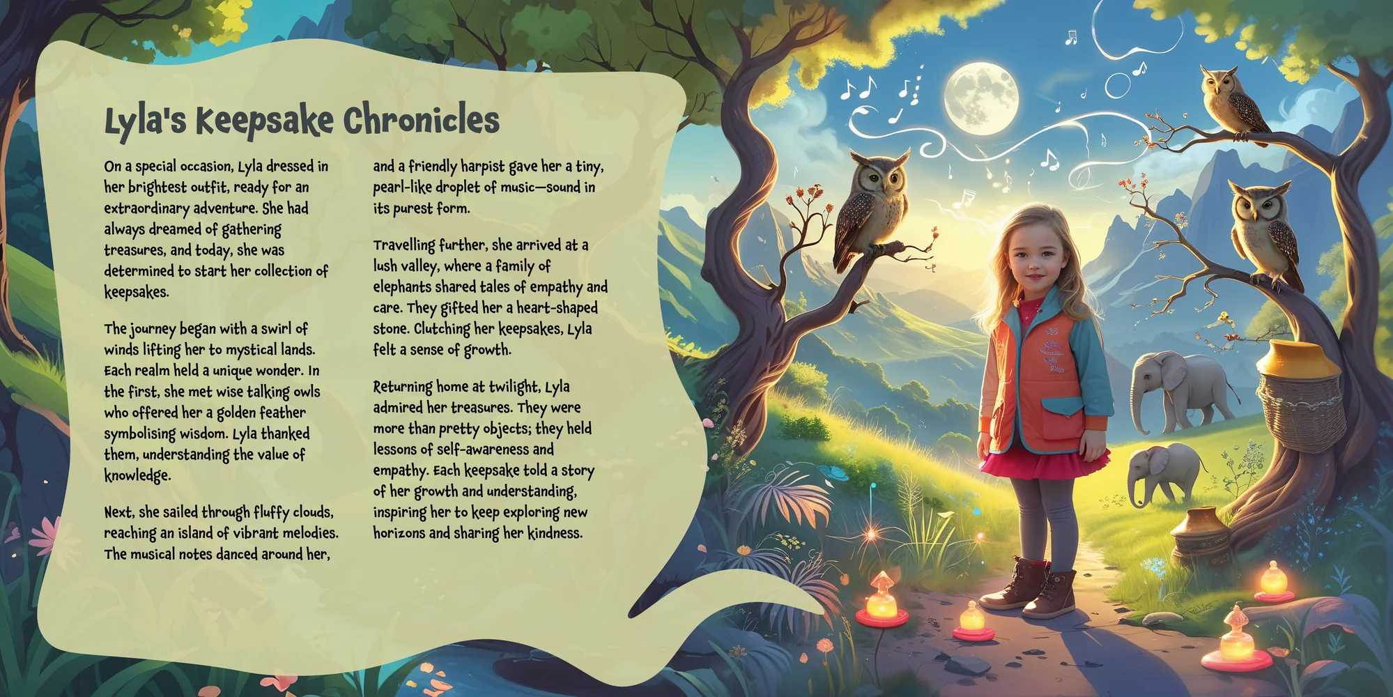Explore the preview pages below to see how Lyla's adventures come to life—crafted with love and personalized just for her. We hope this preview brings a smile to your face and joy to Lyla's heart.
