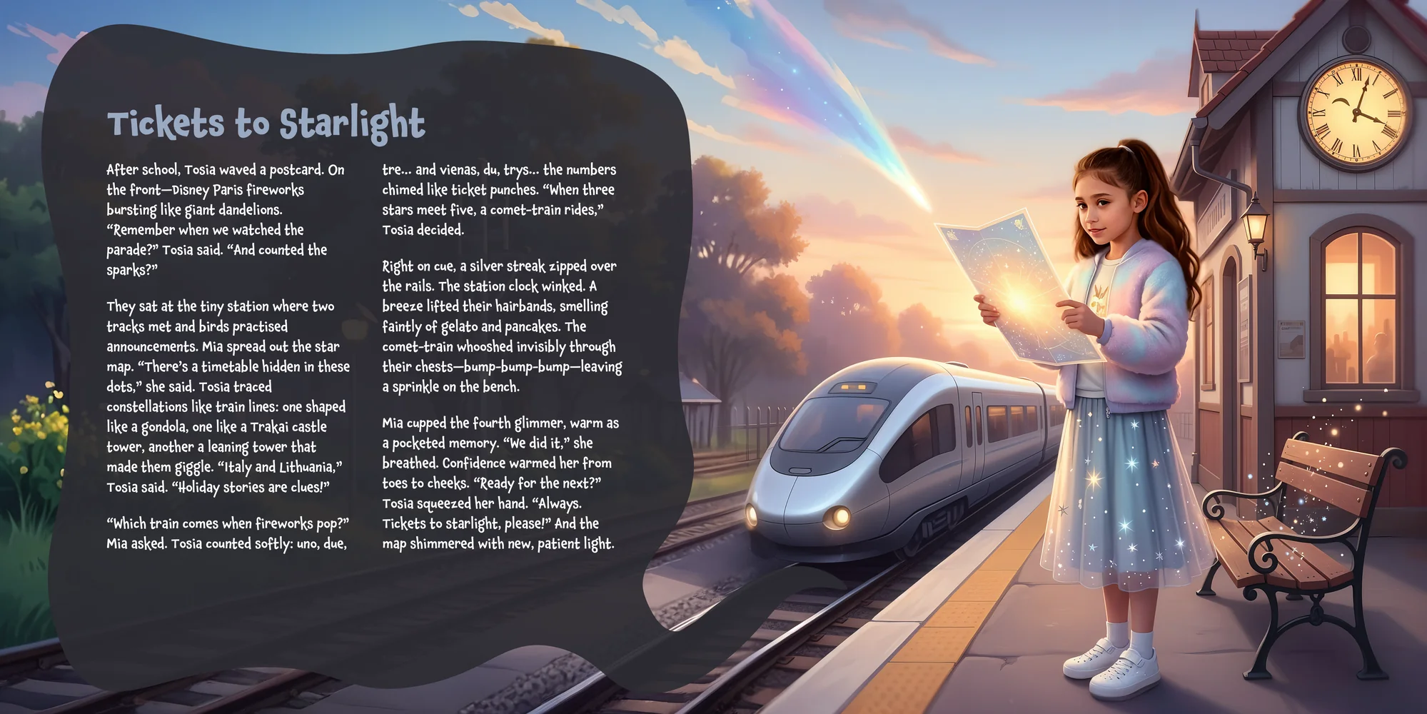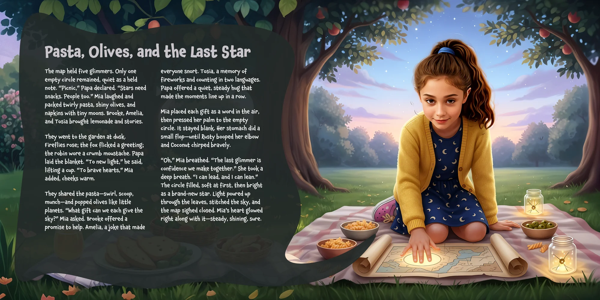 Welcome, Irma! Here's a special preview of the story where Mia is the star. This unique book captures the magic of Mia's favorite things, and the little details you've shared.