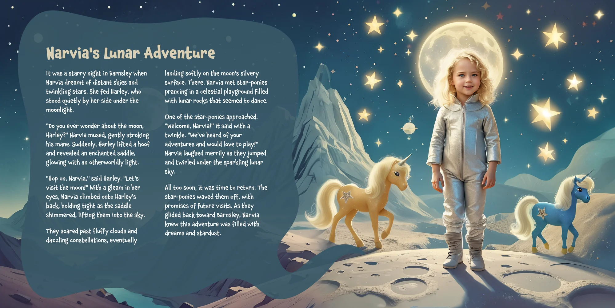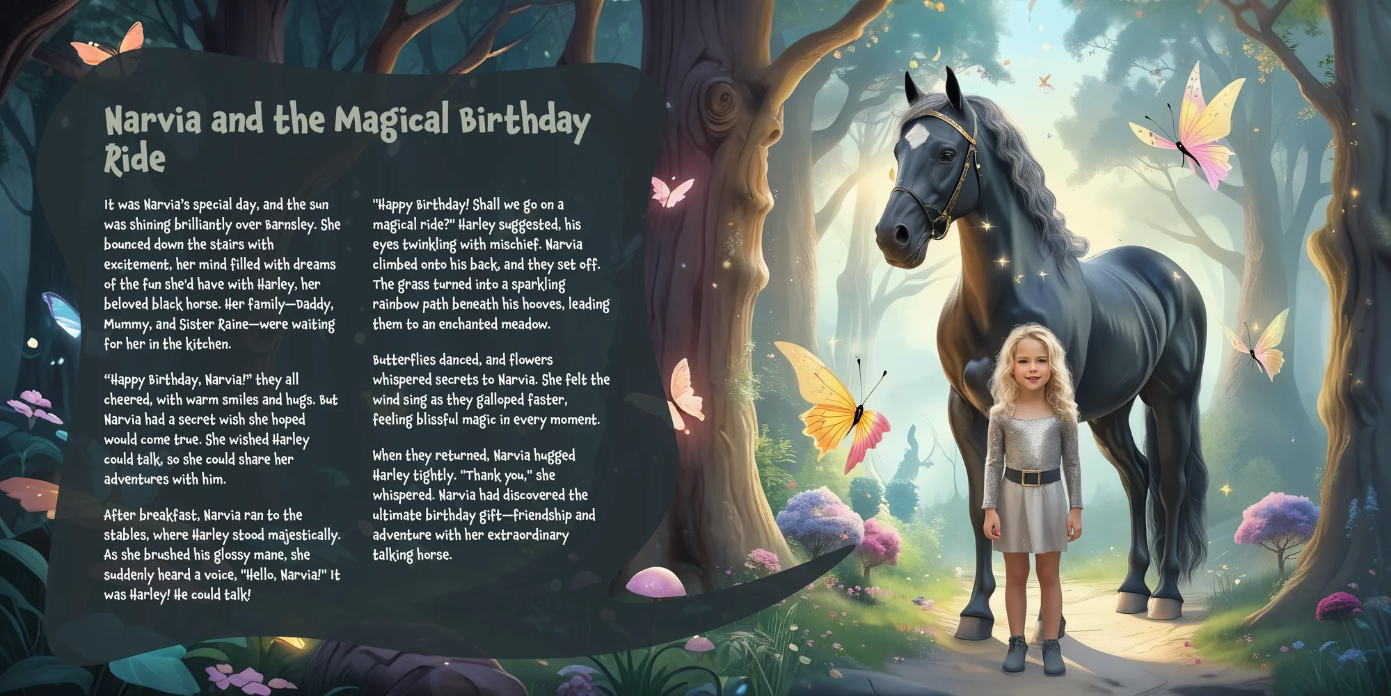 Explore the preview pages below to see how Narvia's adventures come to life—crafted with love and personalized just for her. We hope this preview brings a smile to your face and joy to Narvia's heart.