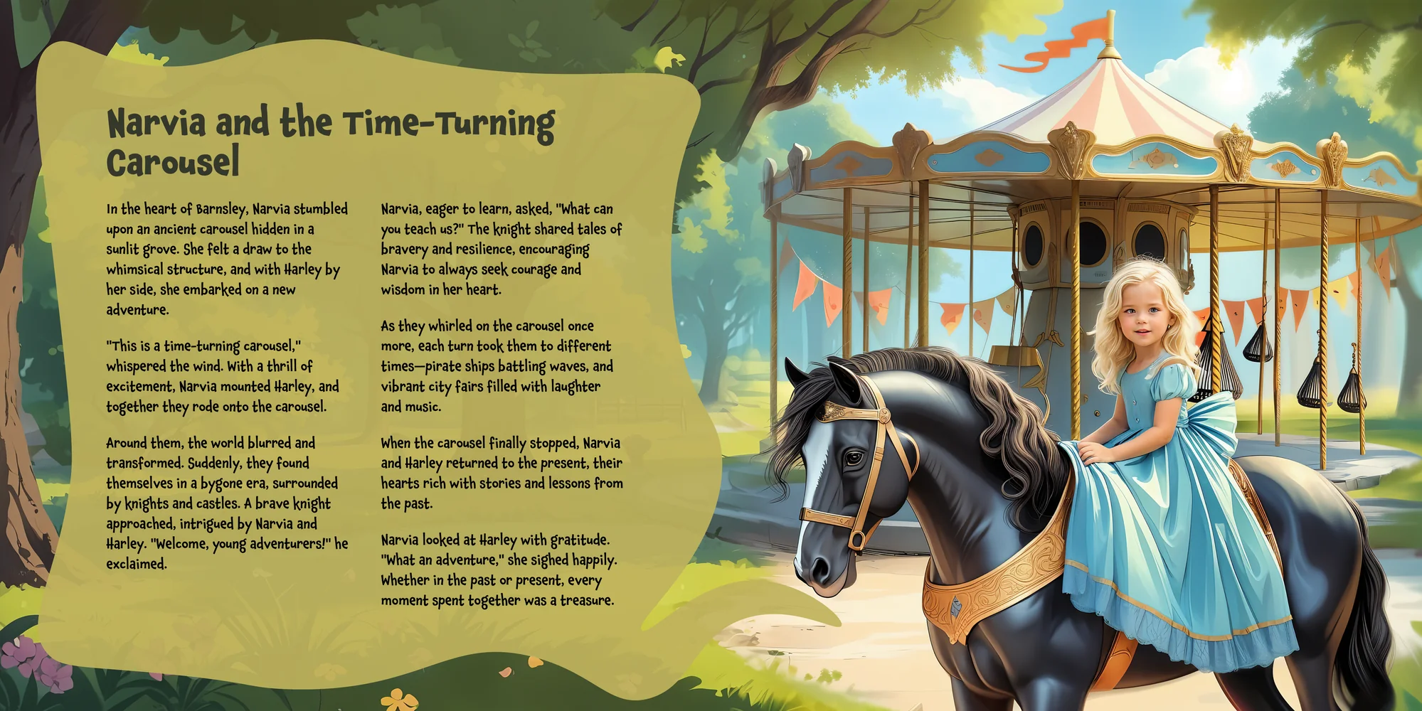 Welcome, Charlotte! Here's a special preview of the story where Narvia is the star. This unique book captures the magic of Narvia's favorite things, and the little details you've shared.