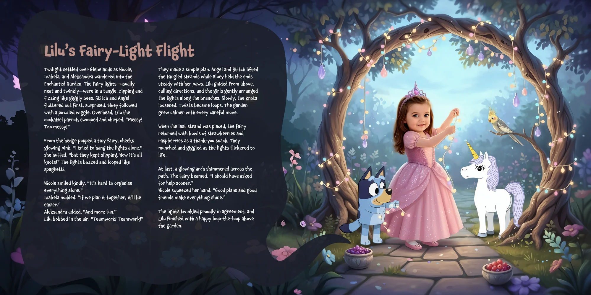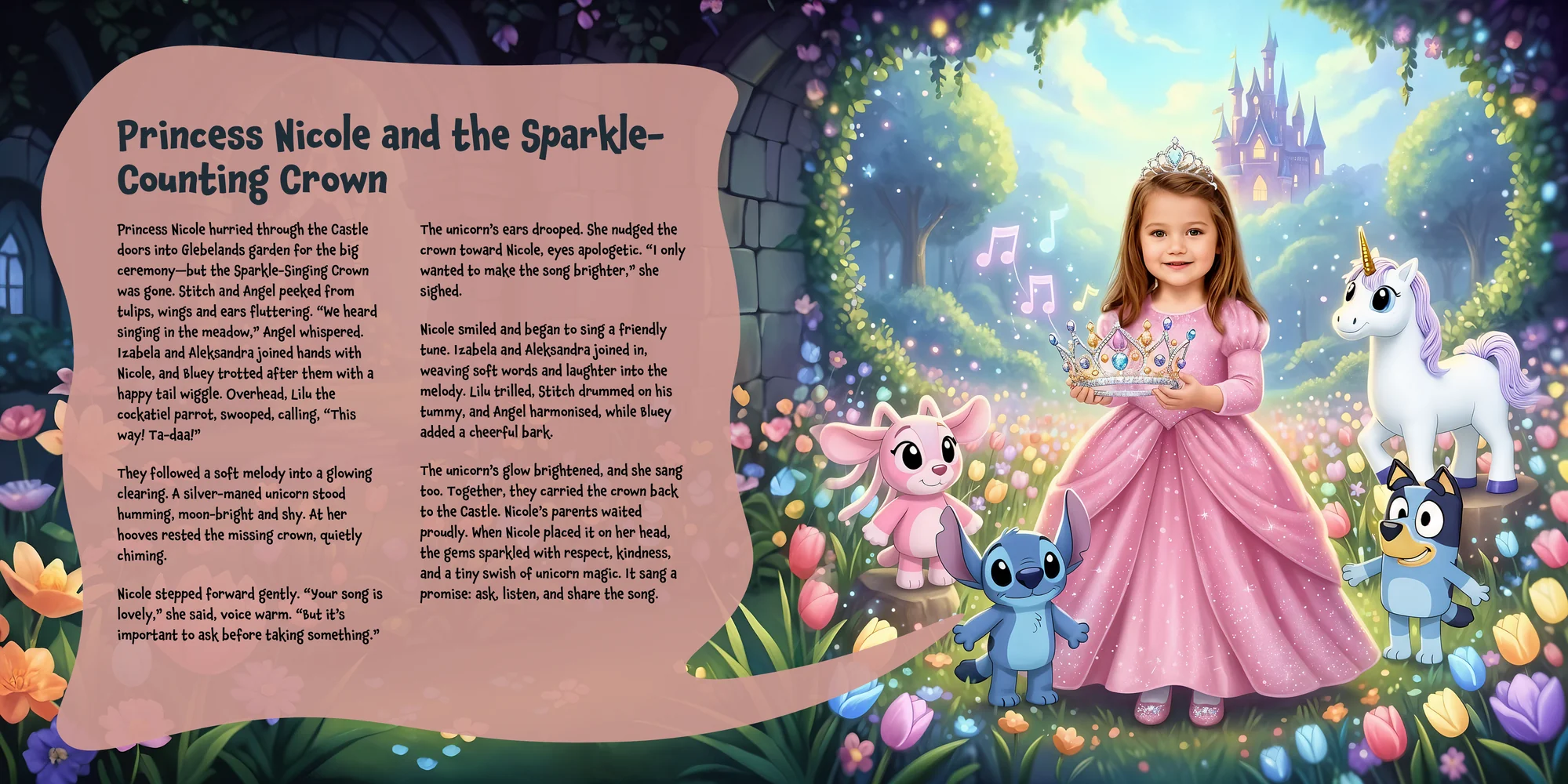 Explore the preview pages below to see how Nicole's adventures come to life—crafted with love and personalized just for her. We hope this preview brings a smile to your face and joy to Nicole's heart.