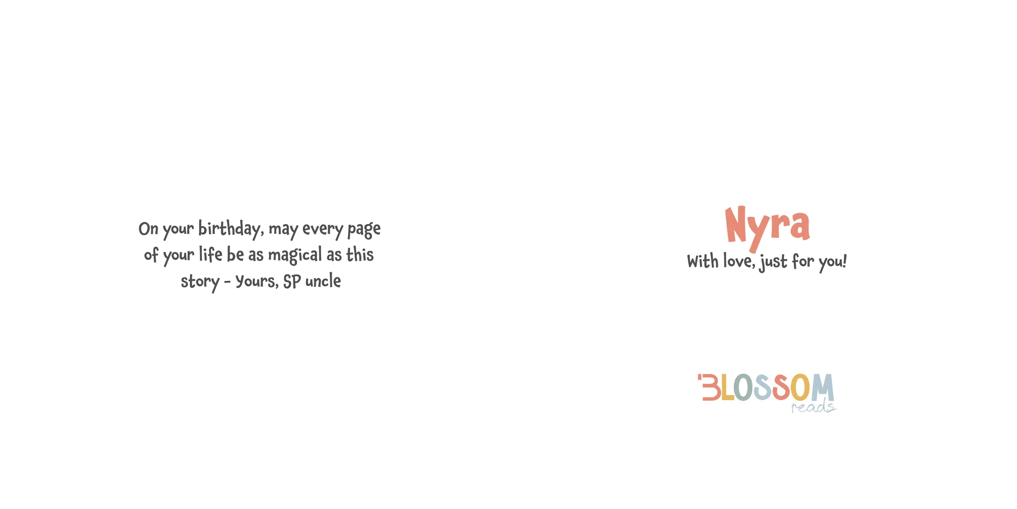 Explore the preview pages below to see how Nyra's adventures come to life—crafted with love and personalized just for her. We hope this preview brings a smile to your face and joy to Nyra's heart.