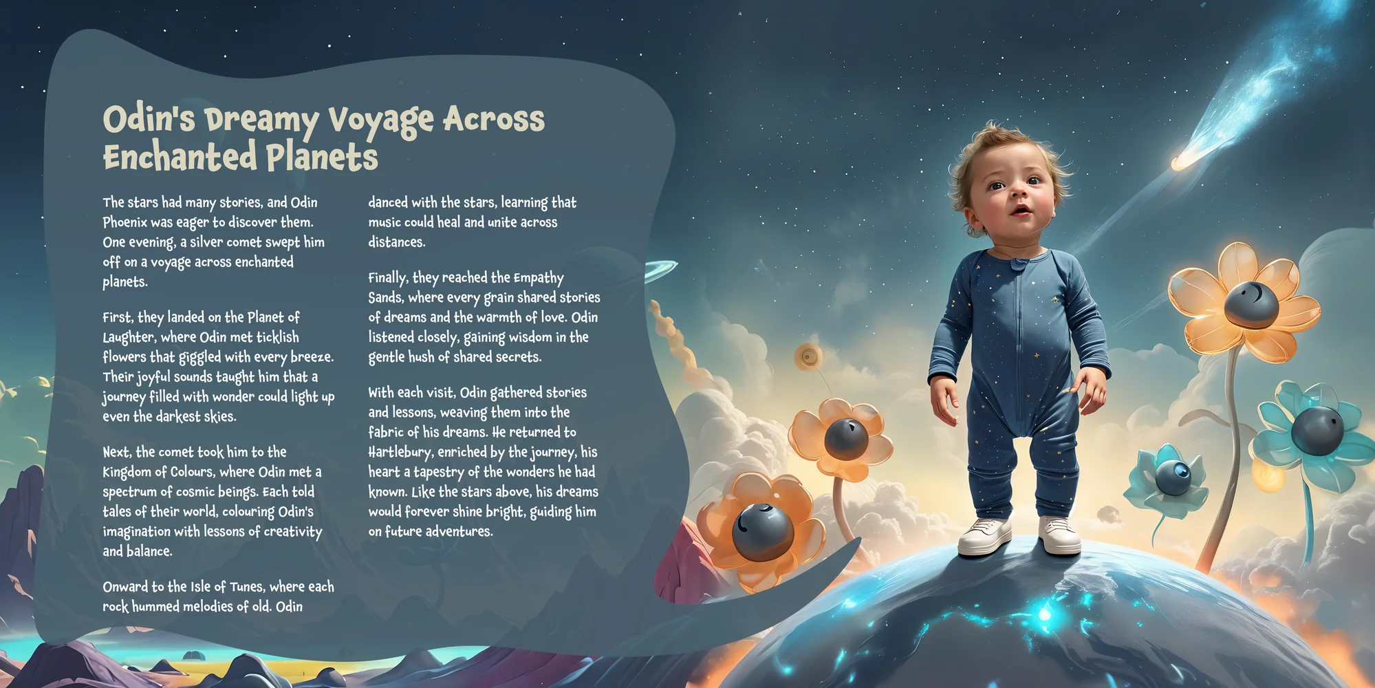 Explore the preview pages below to see how Odin Phoenix's adventures come to life—crafted with love and personalized just for him. We hope this preview brings a smile to your face and joy to Odin Phoenix's heart.