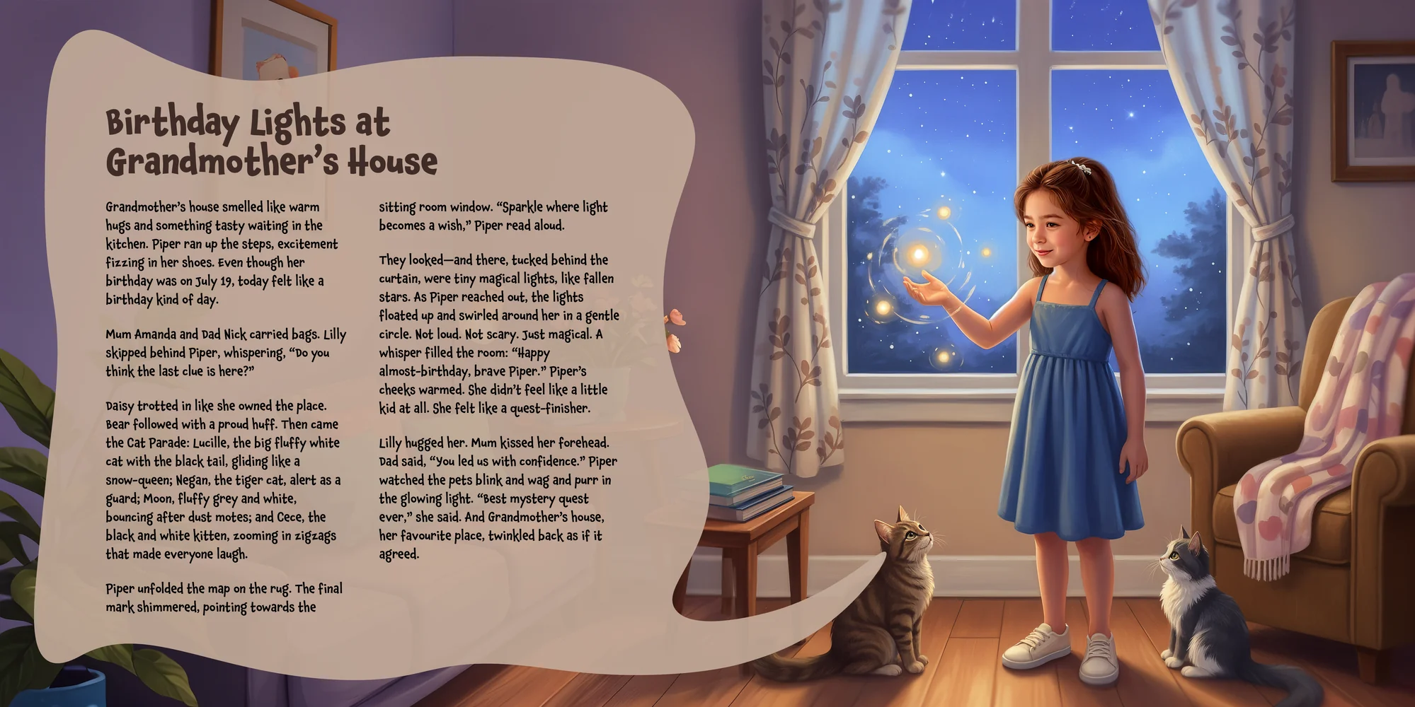 Welcome, Amanda! Here's a special preview of the story where Piper is the star. This unique book captures the magic of Piper 's favorite things, and the little details you've shared.