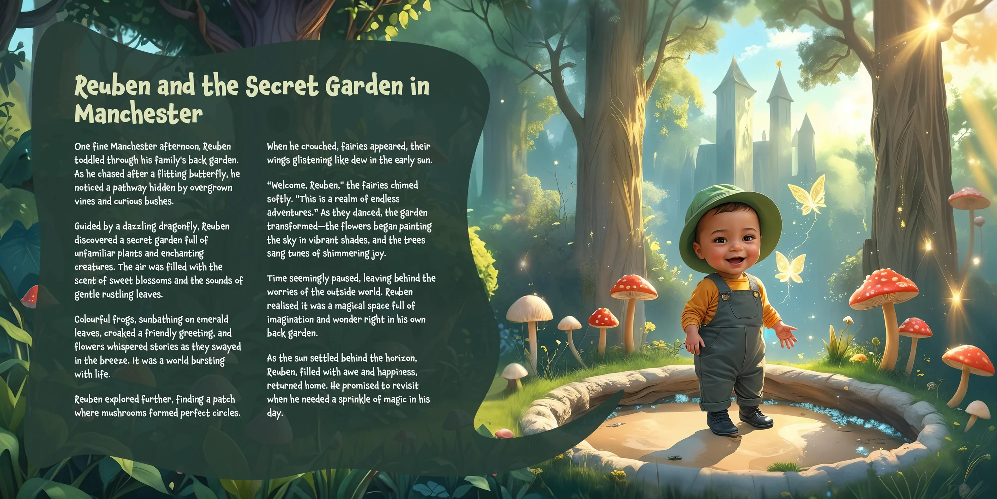 Explore the preview pages below to see how Reuben's adventures come to life—crafted with love and personalized just for him. We hope this preview brings a smile to your face and joy to Reuben's heart.