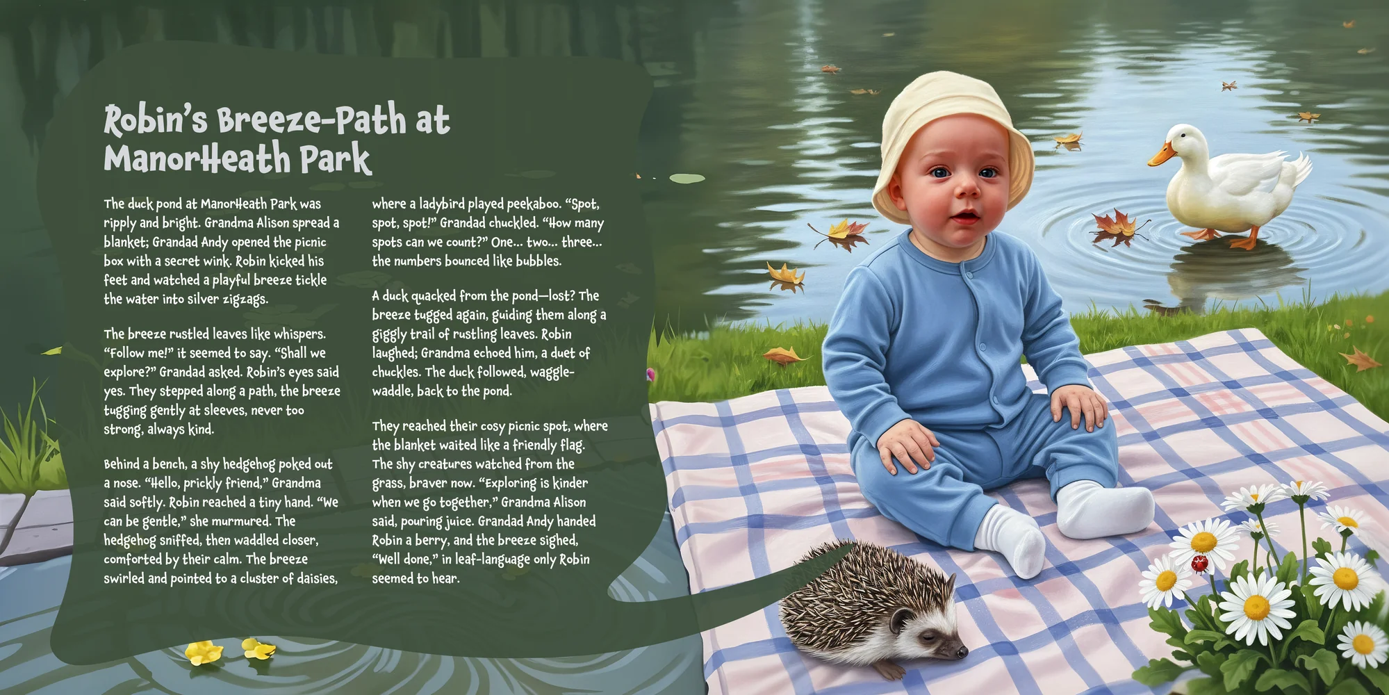 Explore the preview pages below to see how Robin's adventures come to life—crafted with love and personalized just for him. We hope this preview brings a smile to your face and joy to Robin's heart.