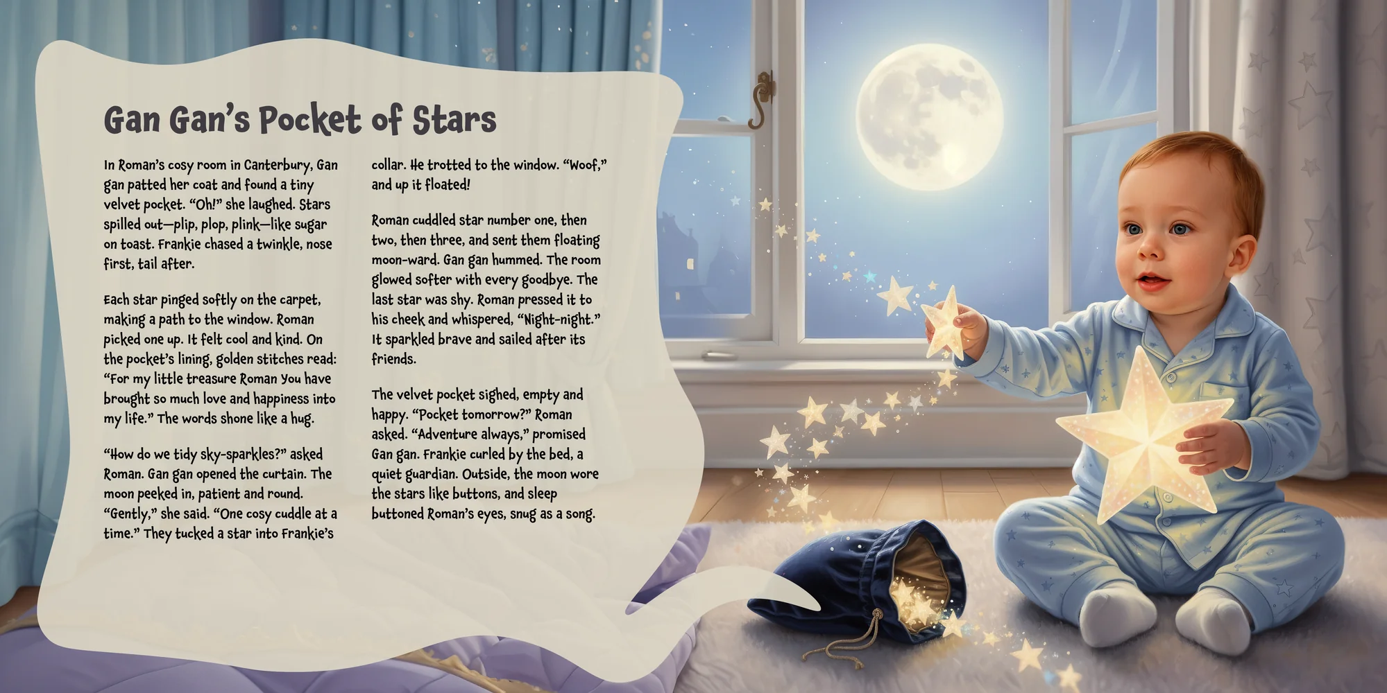 Welcome, Esther! Here's a special preview of the story where Roman is the star. This unique book captures the magic of Roman's favorite things, and the little details you've shared.