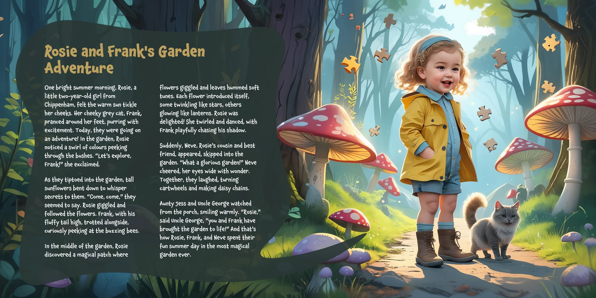 Explore the preview pages below to see how Rosie's adventures come to life—crafted with love and personalized just for her. We hope this preview brings a smile to your face and joy to Rosie's heart.