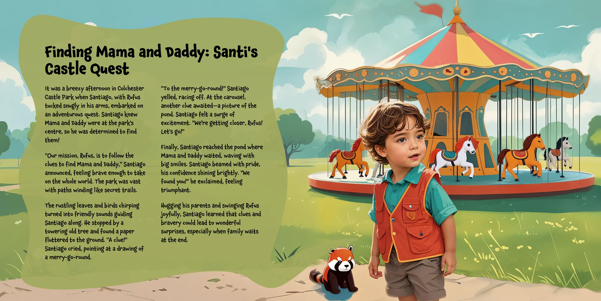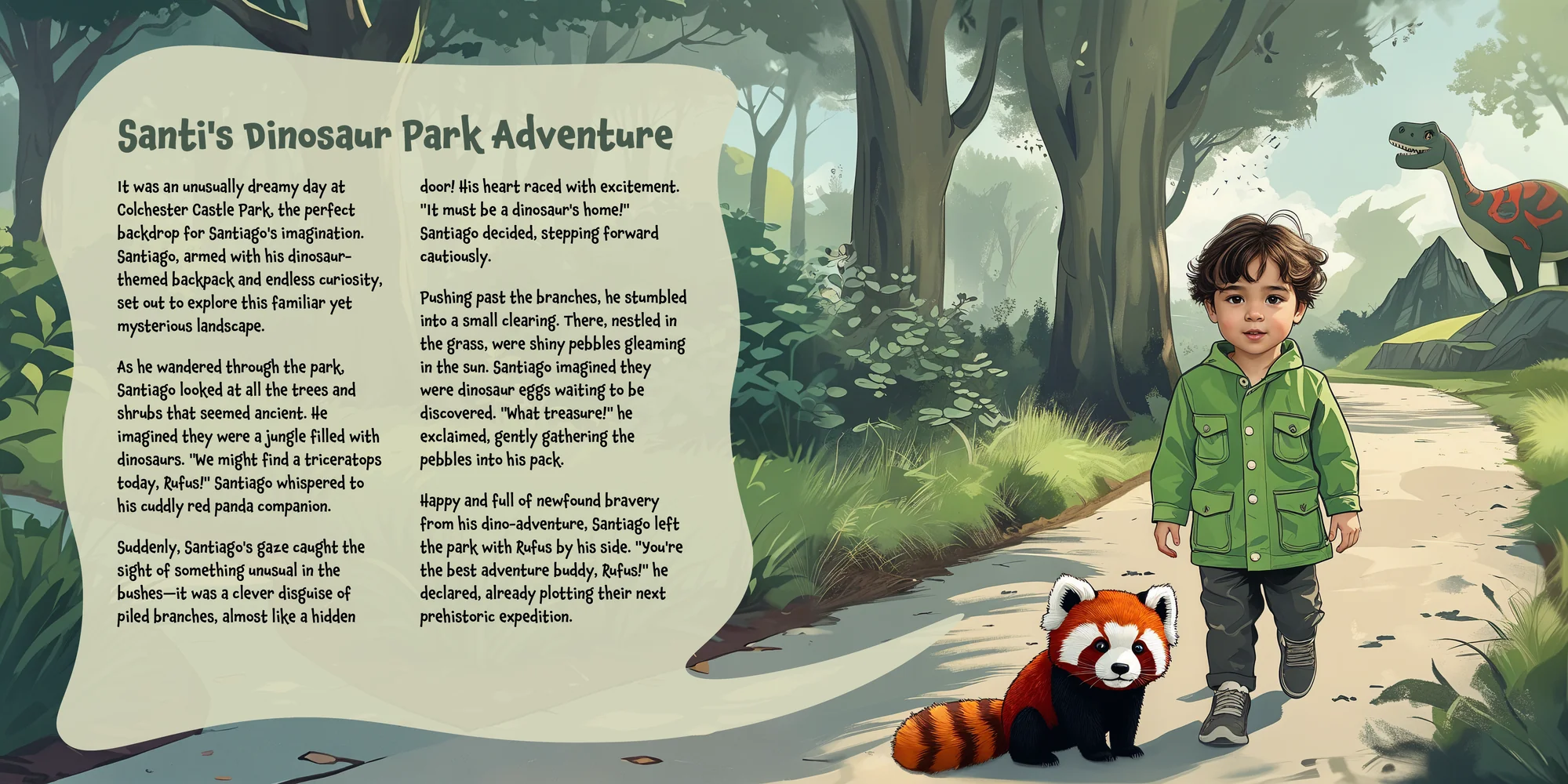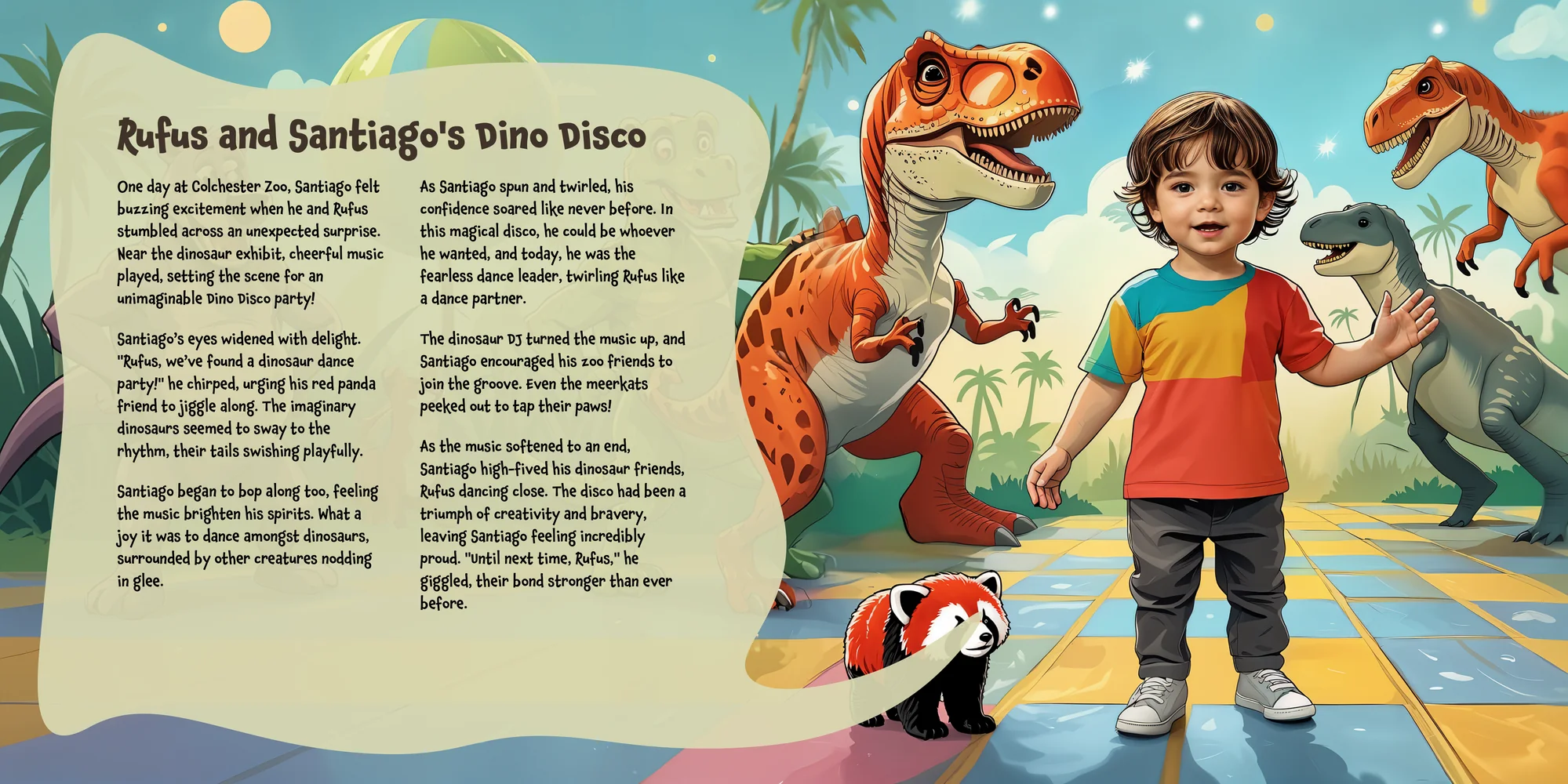 Explore the preview pages below to see how Santiago's adventures come to life—crafted with love and personalized just for him. We hope this preview brings a smile to your face and joy to Santiago's heart.