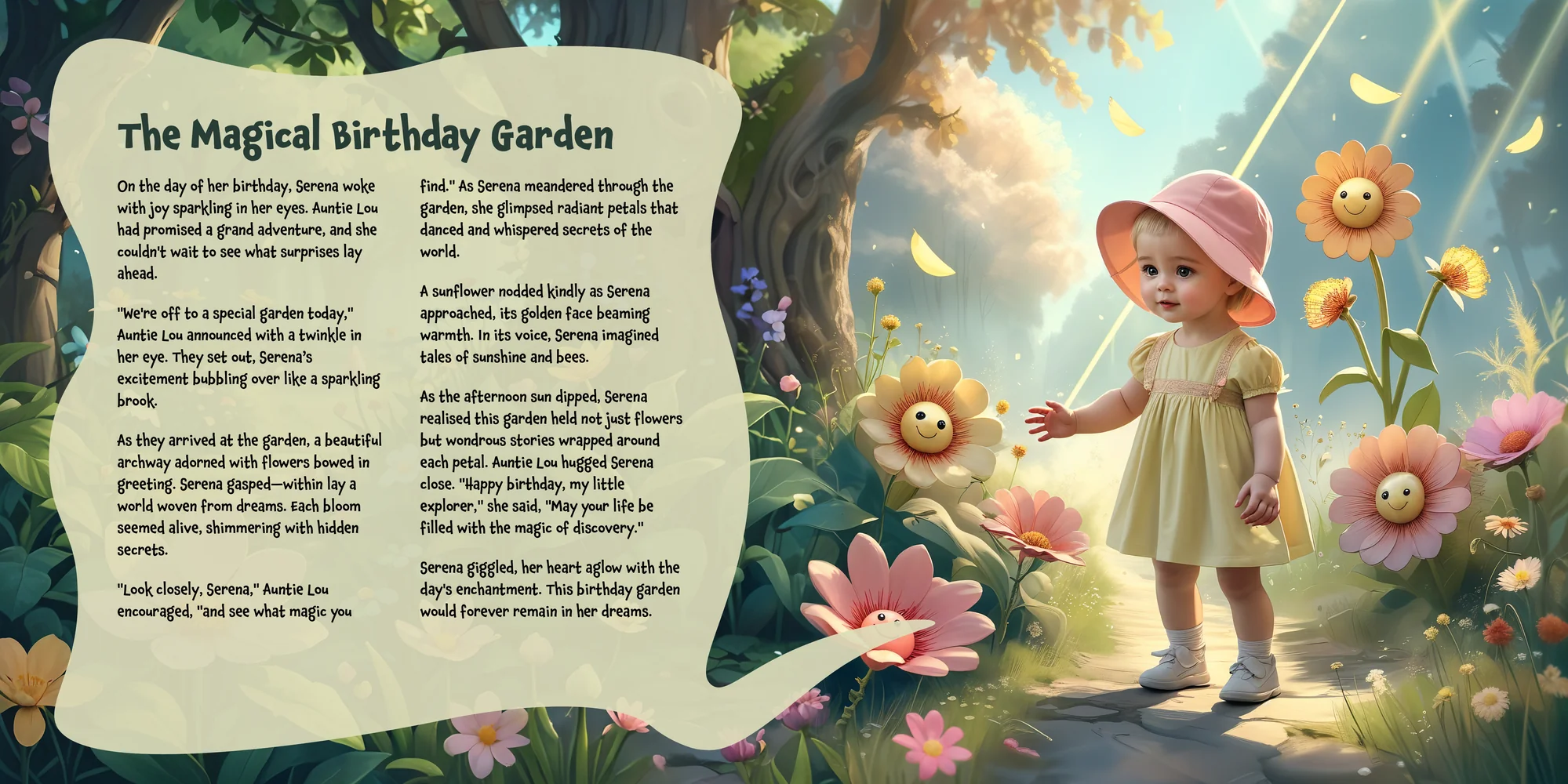 Explore the preview pages below to see how Serena's adventures come to life—crafted with love and personalized just for her. We hope this preview brings a smile to your face and joy to Serena's heart.