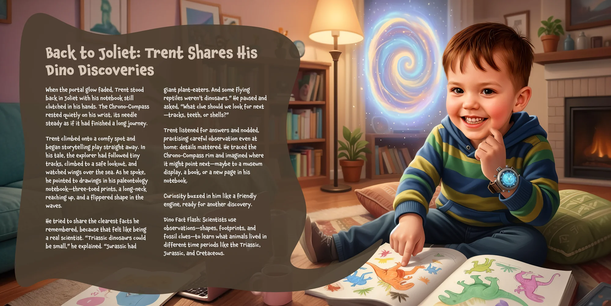 Explore the preview pages below to see how Trent's adventures come to life—crafted with love and personalized just for him. We hope this preview brings a smile to your face and joy to Trent's heart.