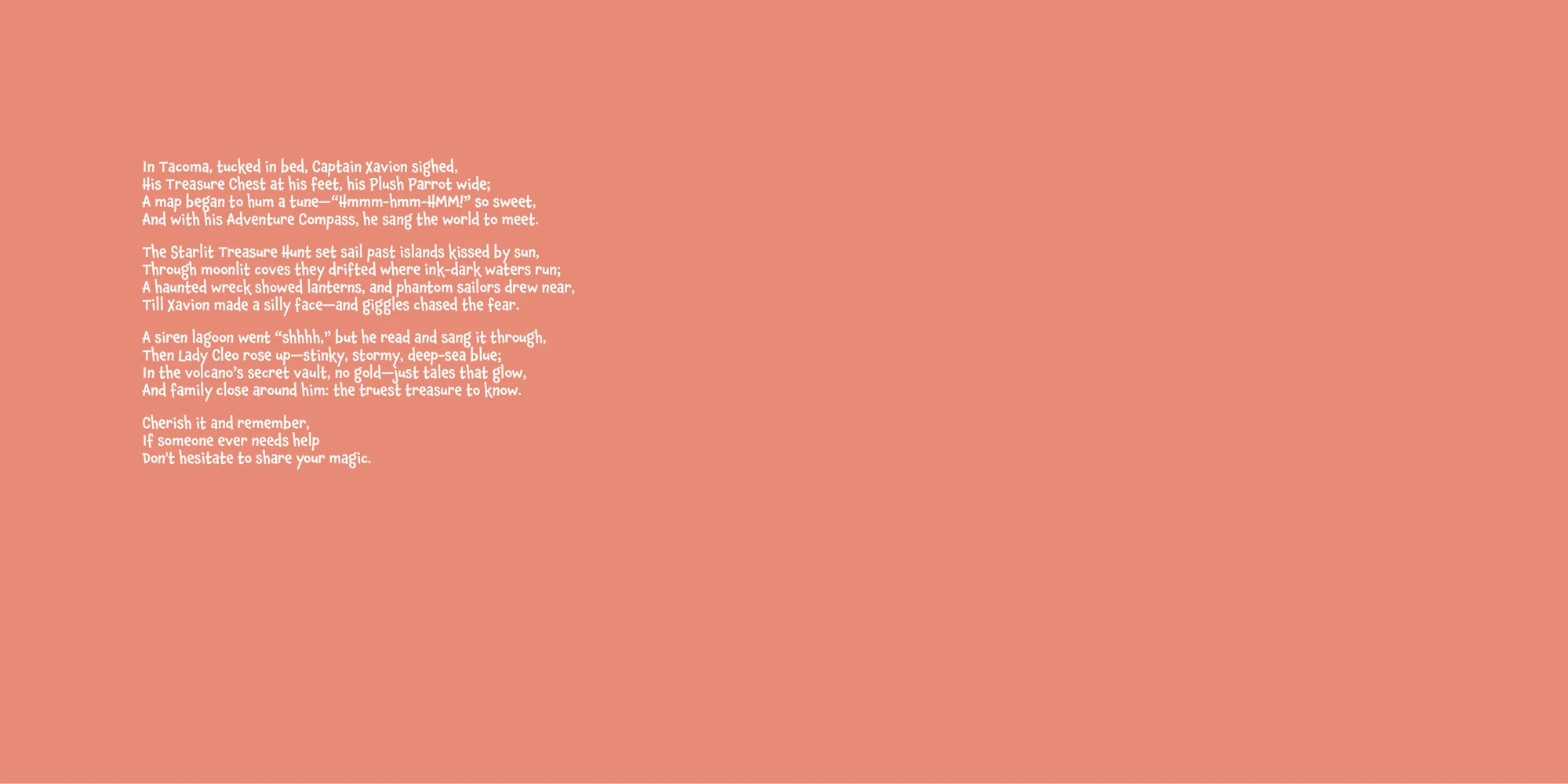 Welcome, Xavvy! Here's a special preview of the story where Xavion is the star. This unique book captures the magic of Xavion 's favorite things, and the little details you've shared.