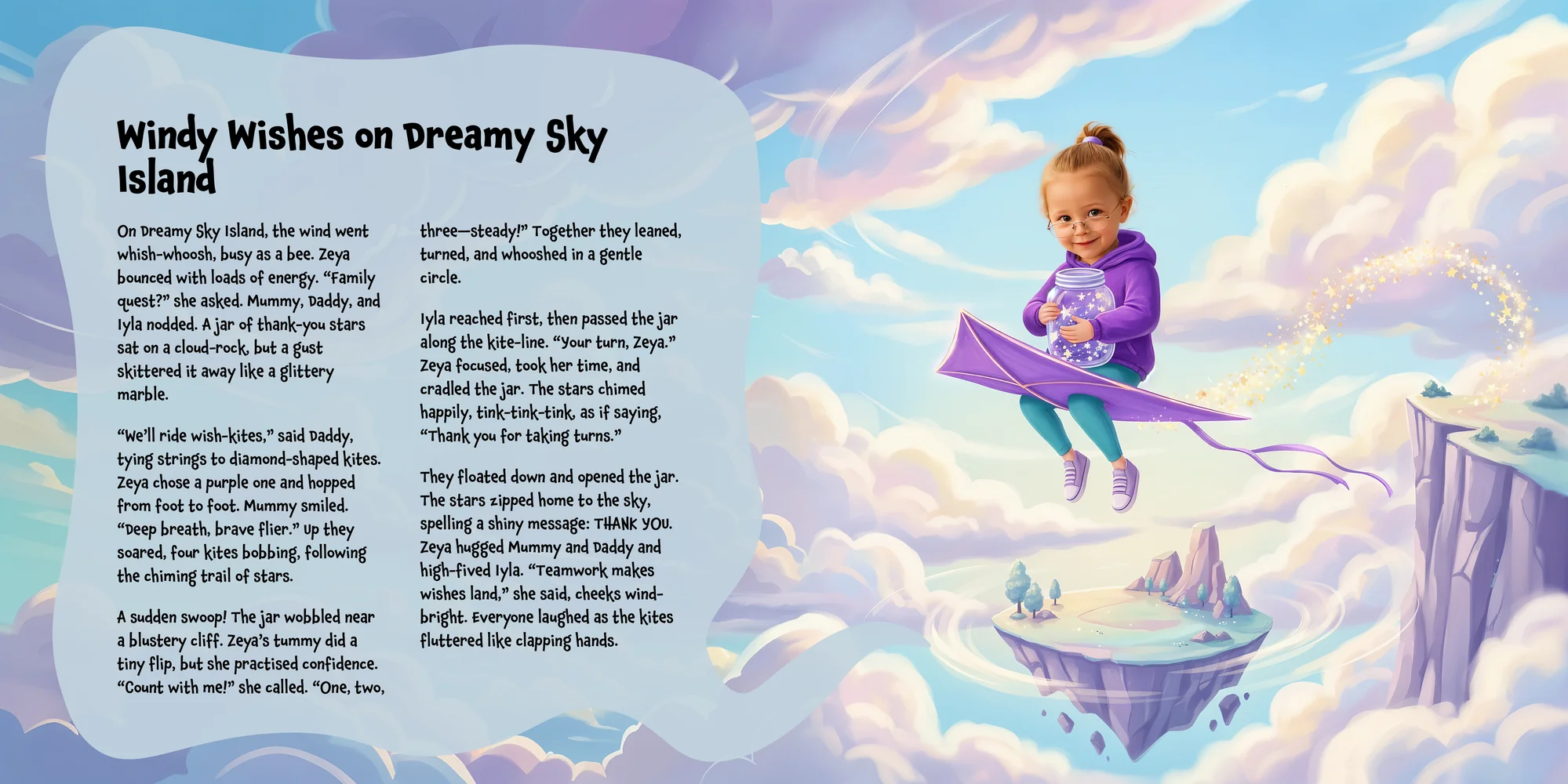 Explore the preview pages below to see how Zeya's adventures come to life—crafted with love and personalized just for her. We hope this preview brings a smile to your face and joy to Zeya's heart.