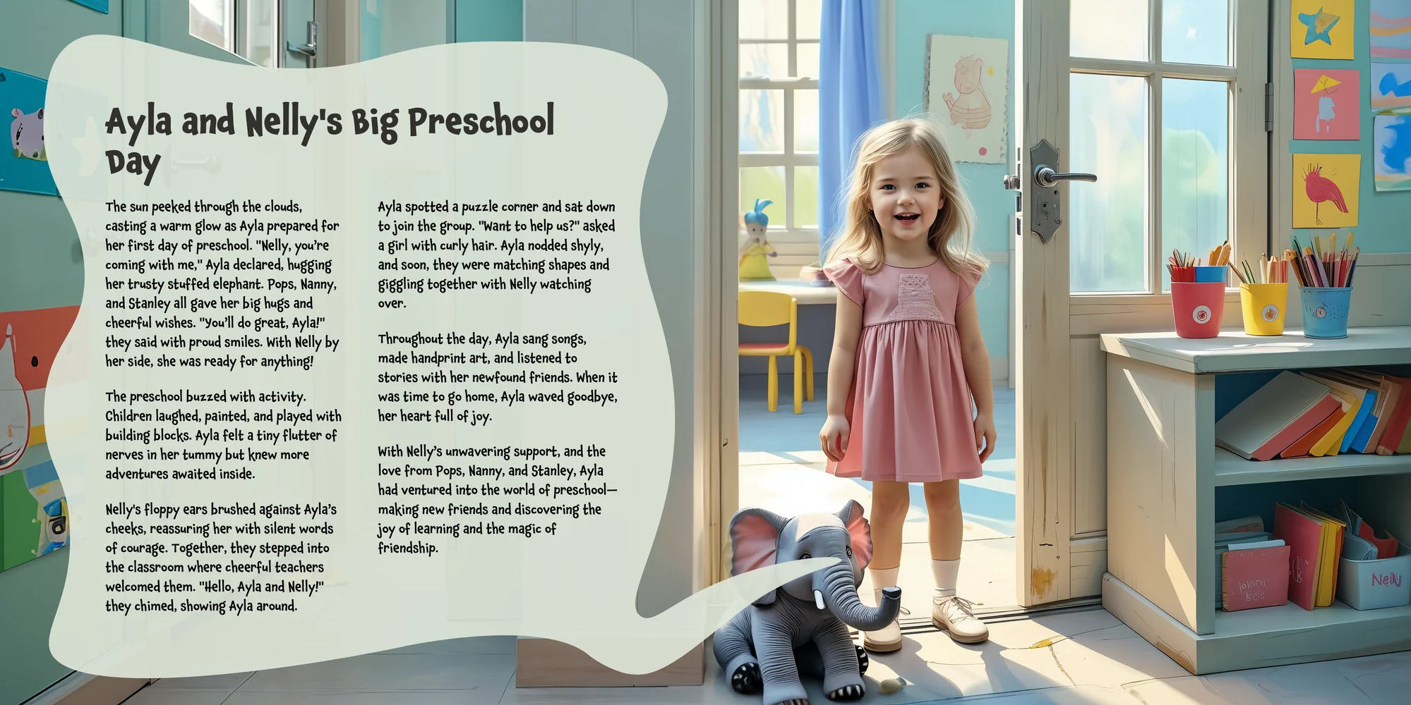 Explore the preview pages below to see how Ayla's adventures come to life—crafted with love and personalized just for her. We hope this preview brings a smile to your face and joy to Ayla's heart.