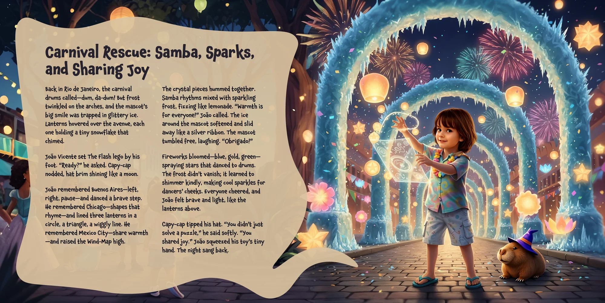 Explore the preview pages below to see how João Vicente's adventures come to life—crafted with love and personalized just for him. We hope this preview brings a smile to your face and joy to João Vicente's heart.