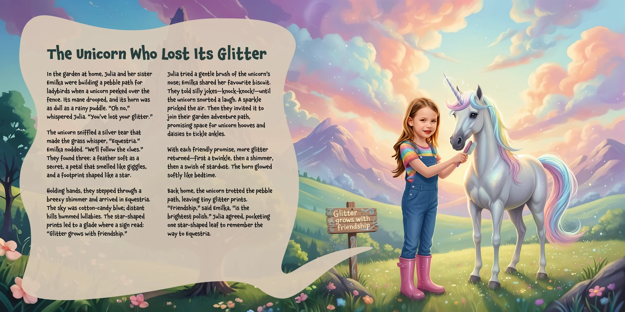 Explore the preview pages below to see how Julia's adventures come to life—crafted with love and personalized just for her. We hope this preview brings a smile to your face and joy to Julia's heart.