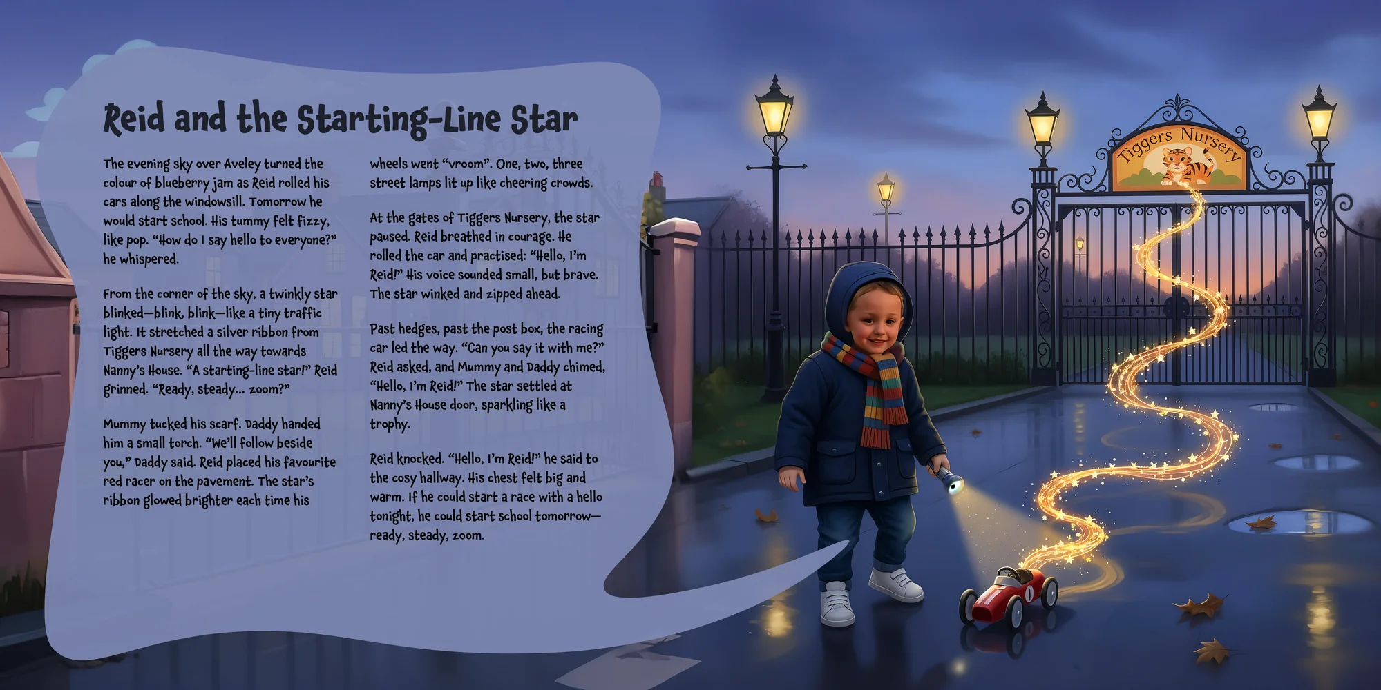 Welcome, Danielle! Here's a special preview of the story where Reid is the star. This unique book captures the magic of Reid's favorite things, and the little details you've shared.