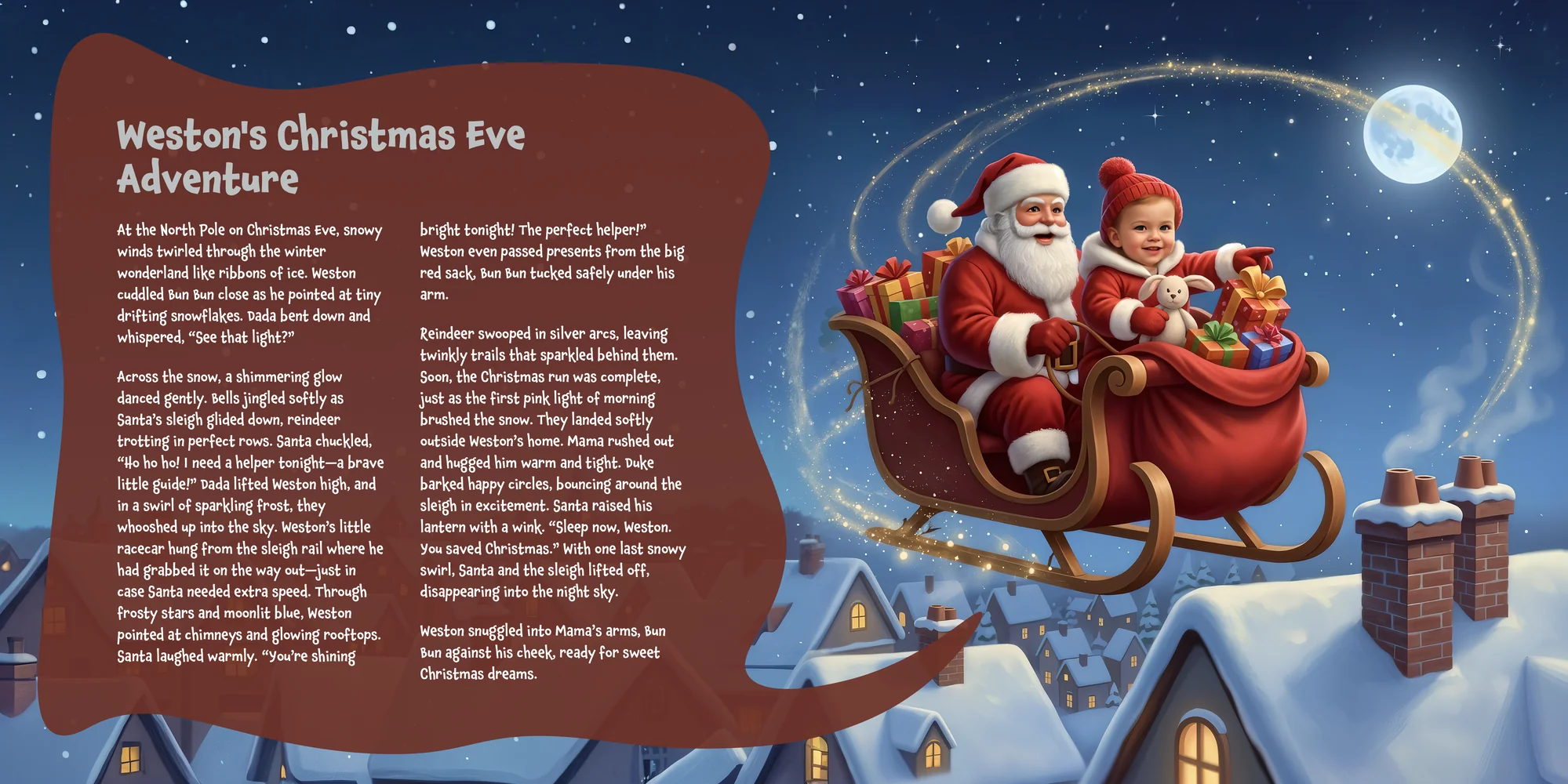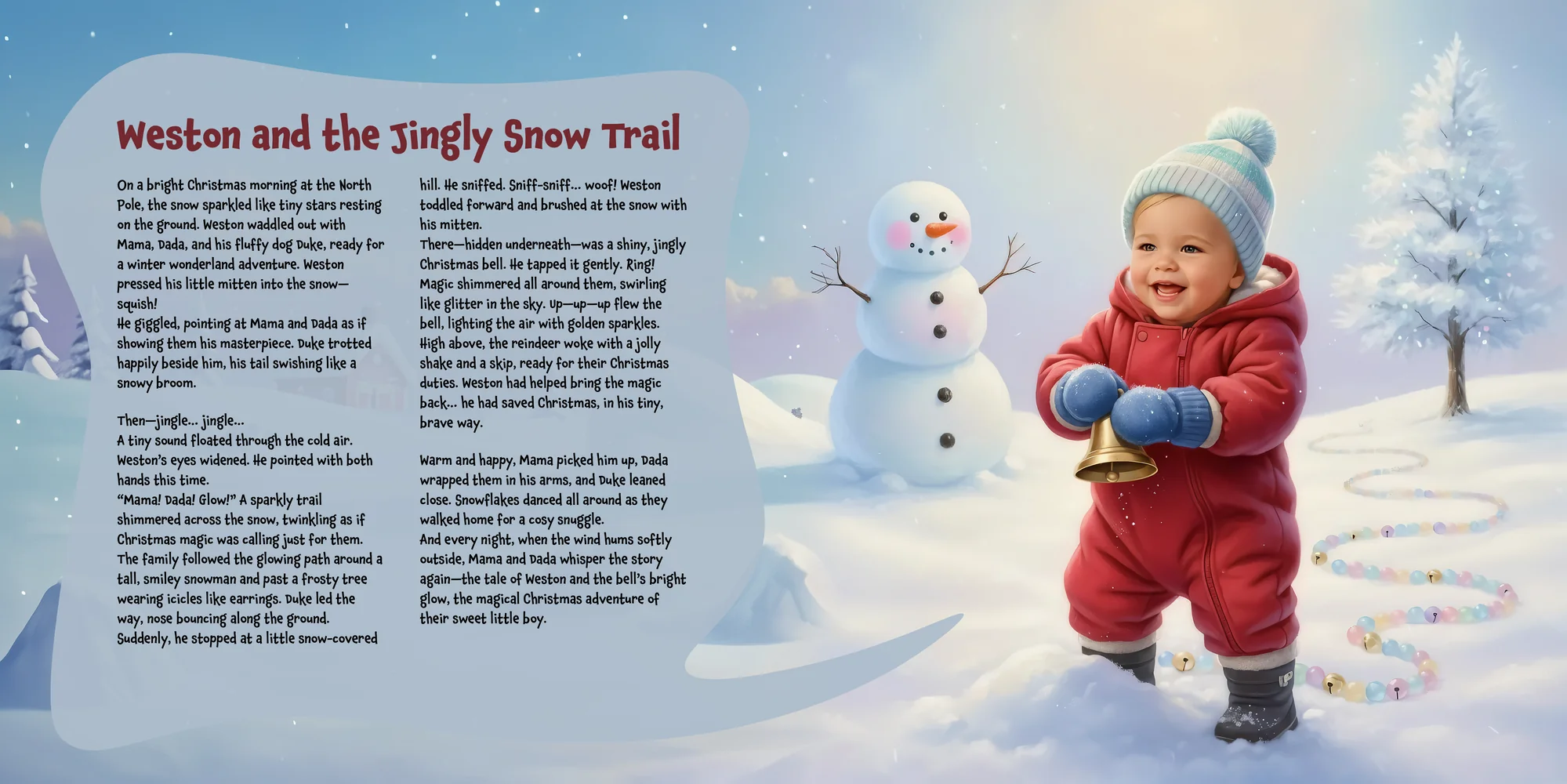 Explore the preview pages below to see how Weston's adventures come to life—crafted with love and personalized just for him. We hope this preview brings a smile to your face and joy to Weston's heart.