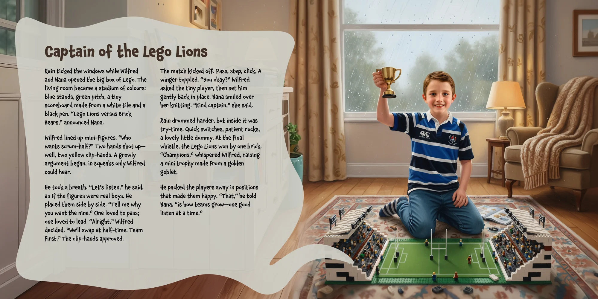 Welcome, Philip! Here's a special preview of the story where Wilfred is the star. This unique book captures the magic of Wilfred's favorite things, and the little details you've shared.